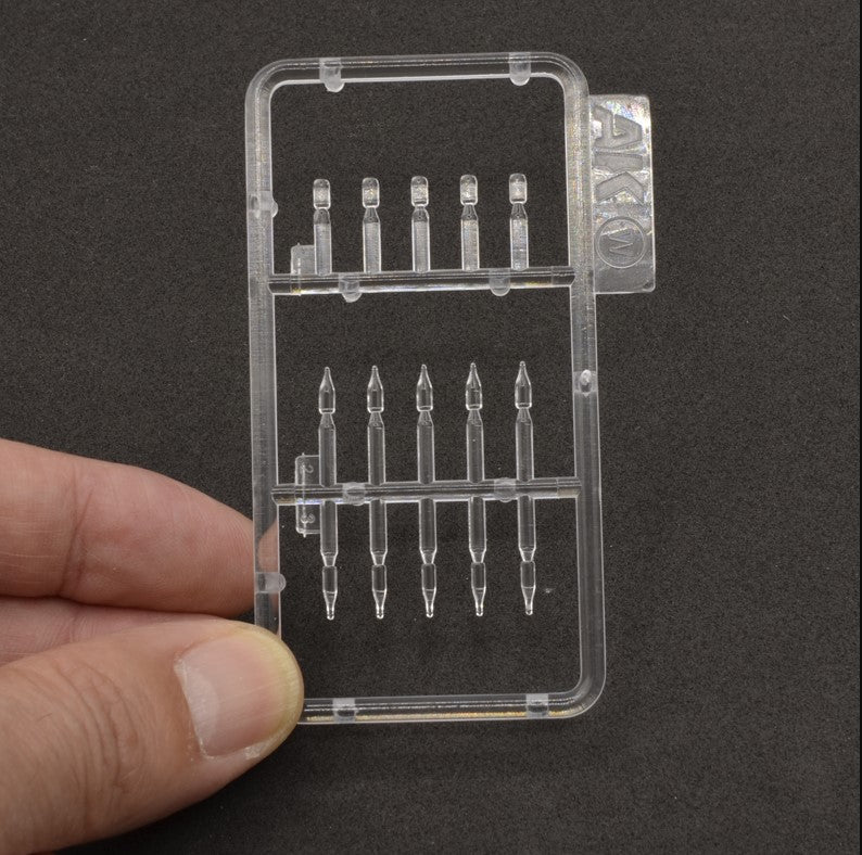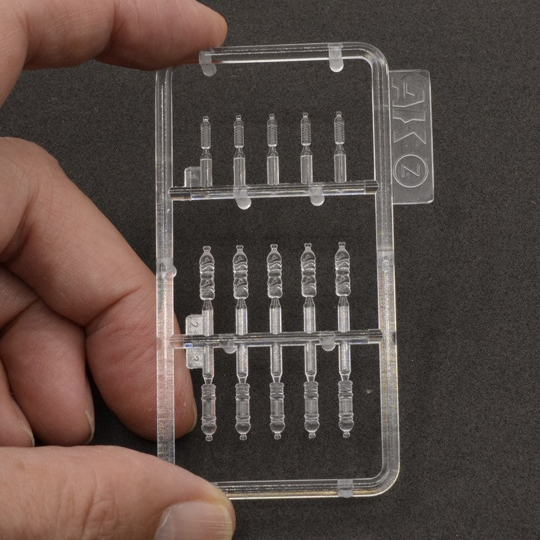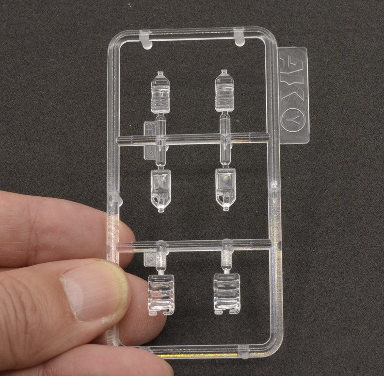- Este kit ofrece 11 tipos diferentes de botellas y garrafas y 1 modelo de lata, todos inyectados en plástico transparente.