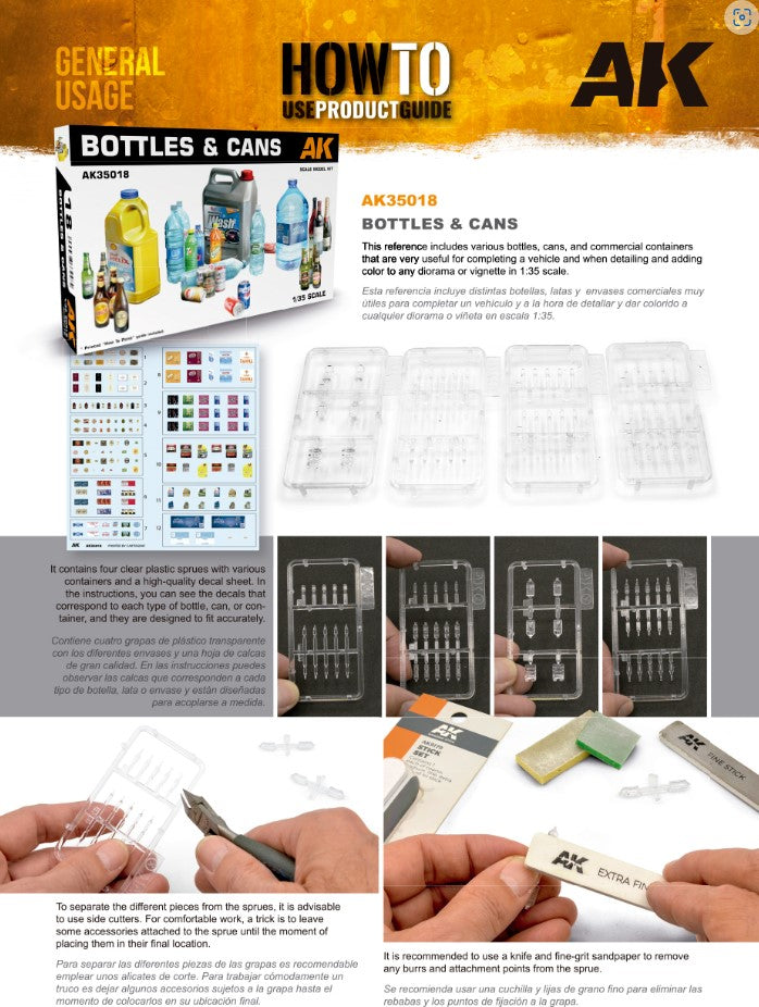 - Las botellas y latas son accesorios llamativos en dioramas o viñetas, también puede aportar un toque de color en modelos no presentados sobre ningún tipo de base.