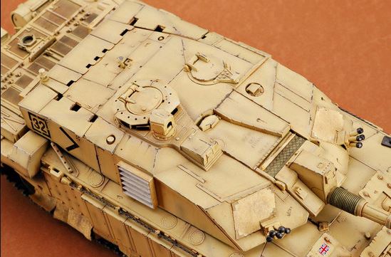 - Modelo de carro de combate británico Challenger 2 durante la Guerra de Irak en 2003, en escala 1/35.