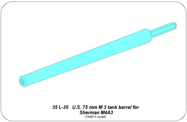 - Tubo de cañón de metal M3 de 75mm utilizado por los tanque estadounidenses M4 Sherman en su versión A3, a escala 1/35.