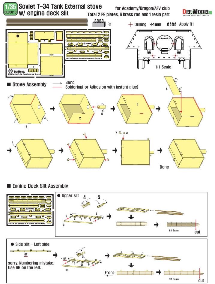 - Set of 3 designed resin pieces, 1 metal barrel, decals, and photo-etched parts; to convert turret of Russian tank T-34/85 from factory 112 in 1945.