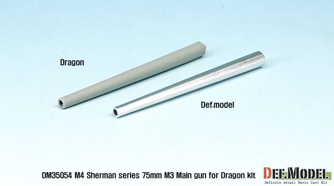 - Tubo de cañón de metal para mejora del carro de combate estadounidense M4 Sherman con cañón de 75mm, en escala 1/35.