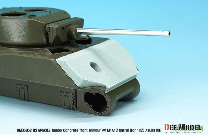 - Set de mejora para el carro de combate estadounidense M4A3E2 Jumbo, con frontal de hormigón y tubo de cañón de 76mm, en escala 1/35.