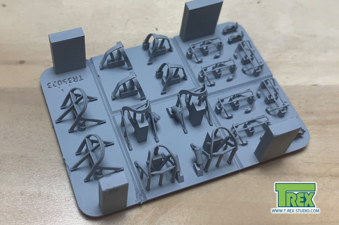 - Juego de guardabarros y protectores para luces y equipamiento exterior de carros norteamericanos M4 Sherman con capa de protección sobre el blindaje, en escala 1/35.