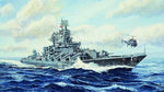 - Modelo de crucero ruso Moskva de la calse Slava, el cual fue hundido en 2022 por misiles ucranianos en el Mar Negro, en escala 1/700.