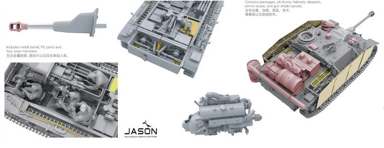 - Se incluyen fotograbados, tubo de cañón de metal, equipaje trasero y piezas transparentes.