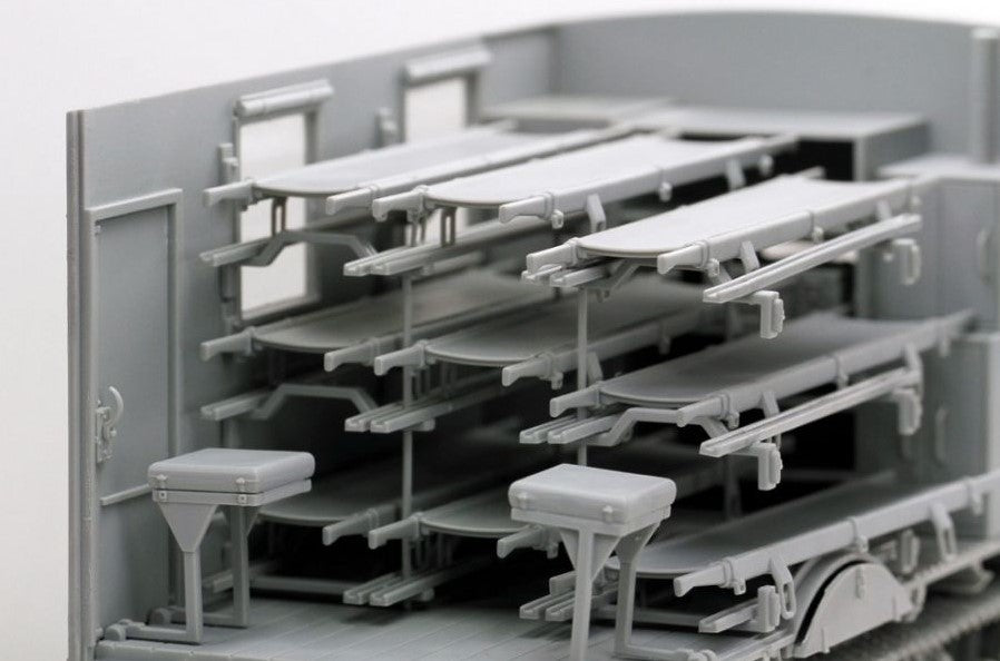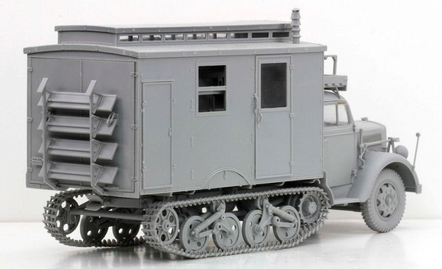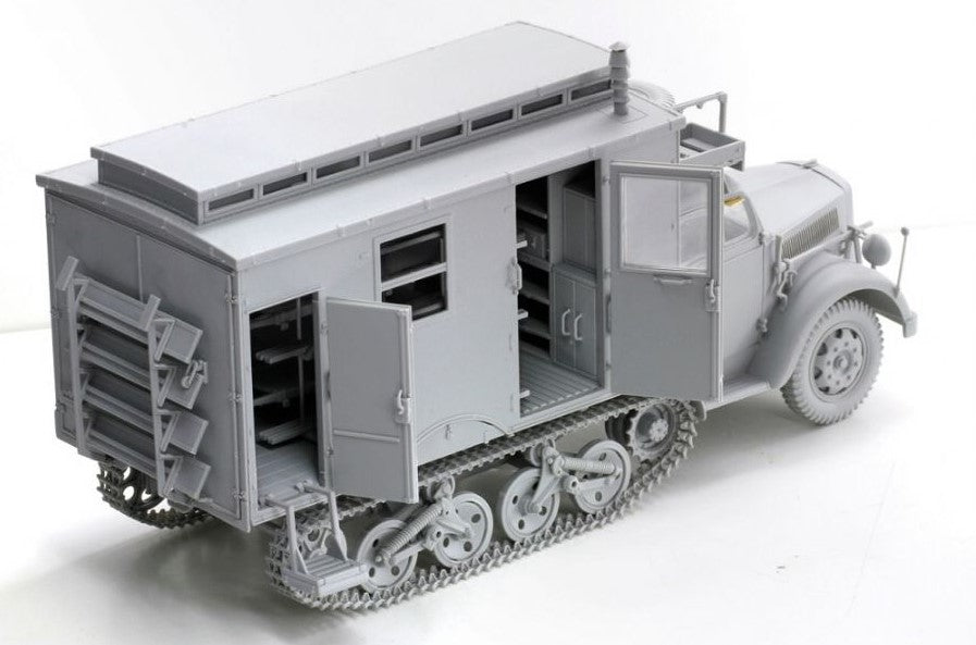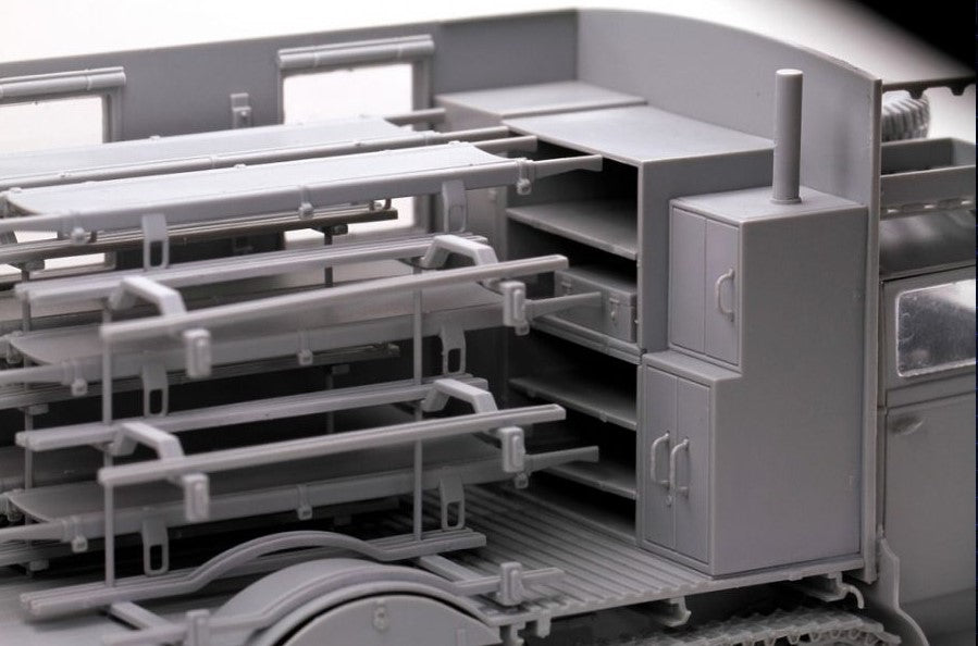 - Modelo de camión de transporte alemán Opel Maultier en su versión de ambulancia, en escala 1/35.