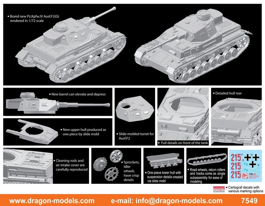 - Maqueta de carro alemán Panzer IV en su versión F2 con cañón largo de 75mm, a escala 1/72.