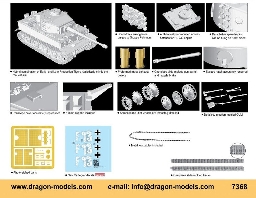 - Modelo del carro pesado alemán Tiger I en versión E con zimmerit, en escala 1/72.