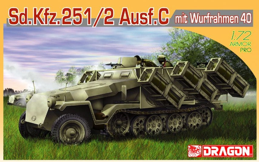 - Modelo de vehículo de blindado Sd.Kfz.251/1 en versión C, adaptado para lanzamiento de cohetes Wurfrahmen 40, en escala 1/72.