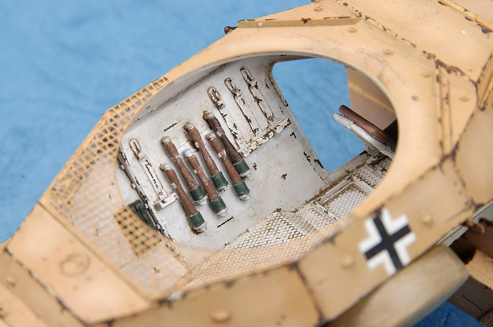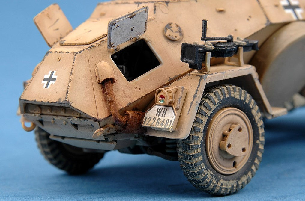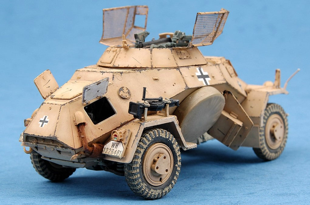 • Modelo de vehículo ligero de exploración alemán SdKfz 222 en su versión durante la campaña del Norte de Africa, en escala 1/35.