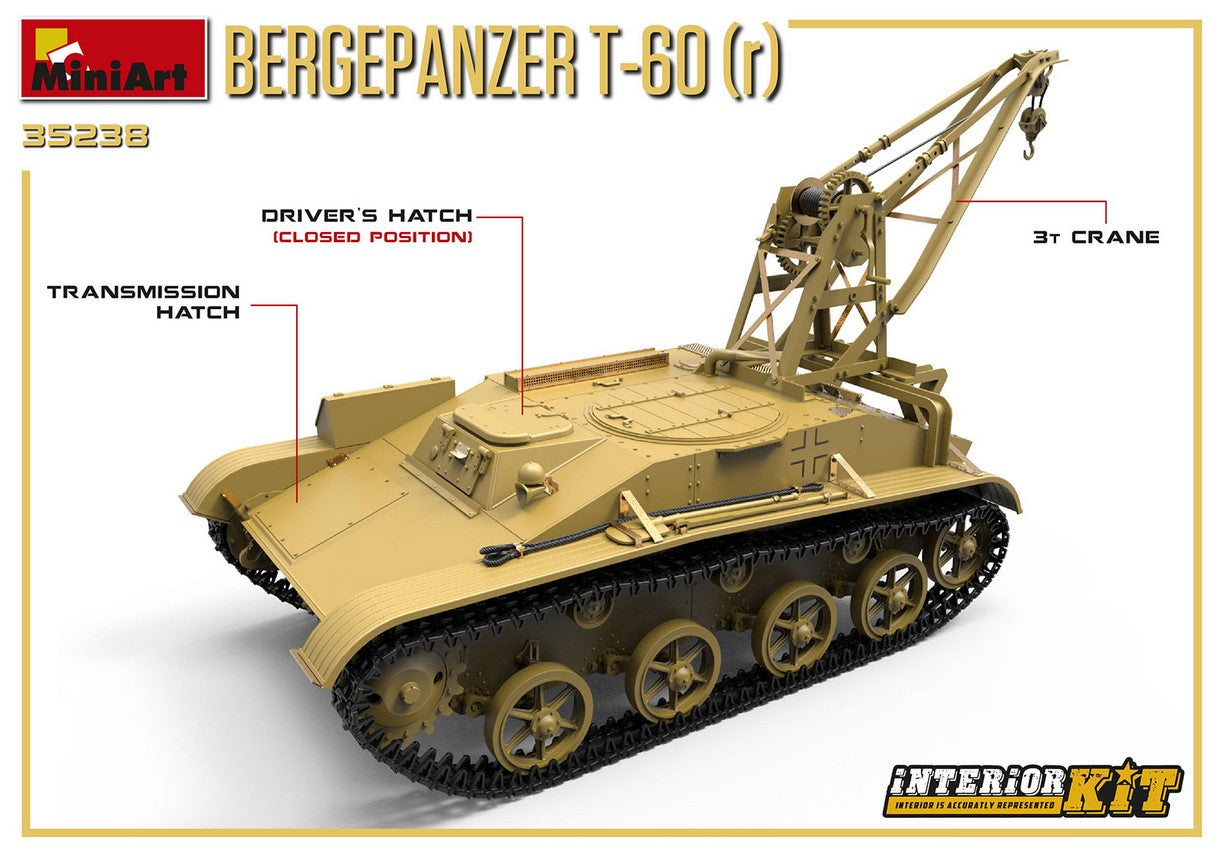 - Modelo de tanque de combate soviético adaptado por los alamenes como vehículo de recuperación Bergepanzer T-60(r) en escala 1/35.