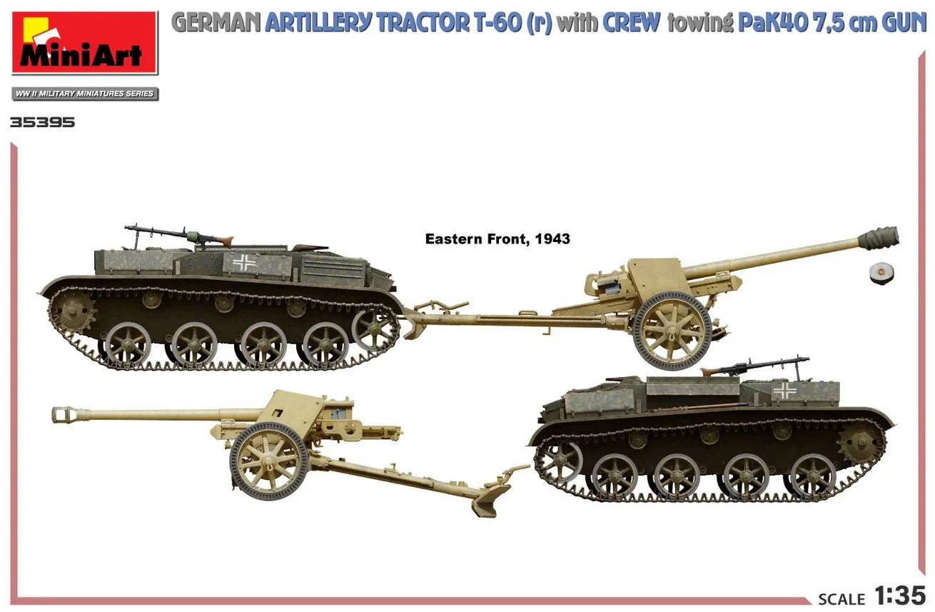 - Modelo de tractor alemán de artillería basado en el chasis del carro soviético T-60 con cañón anticarro PaK40, en escala 1/35.