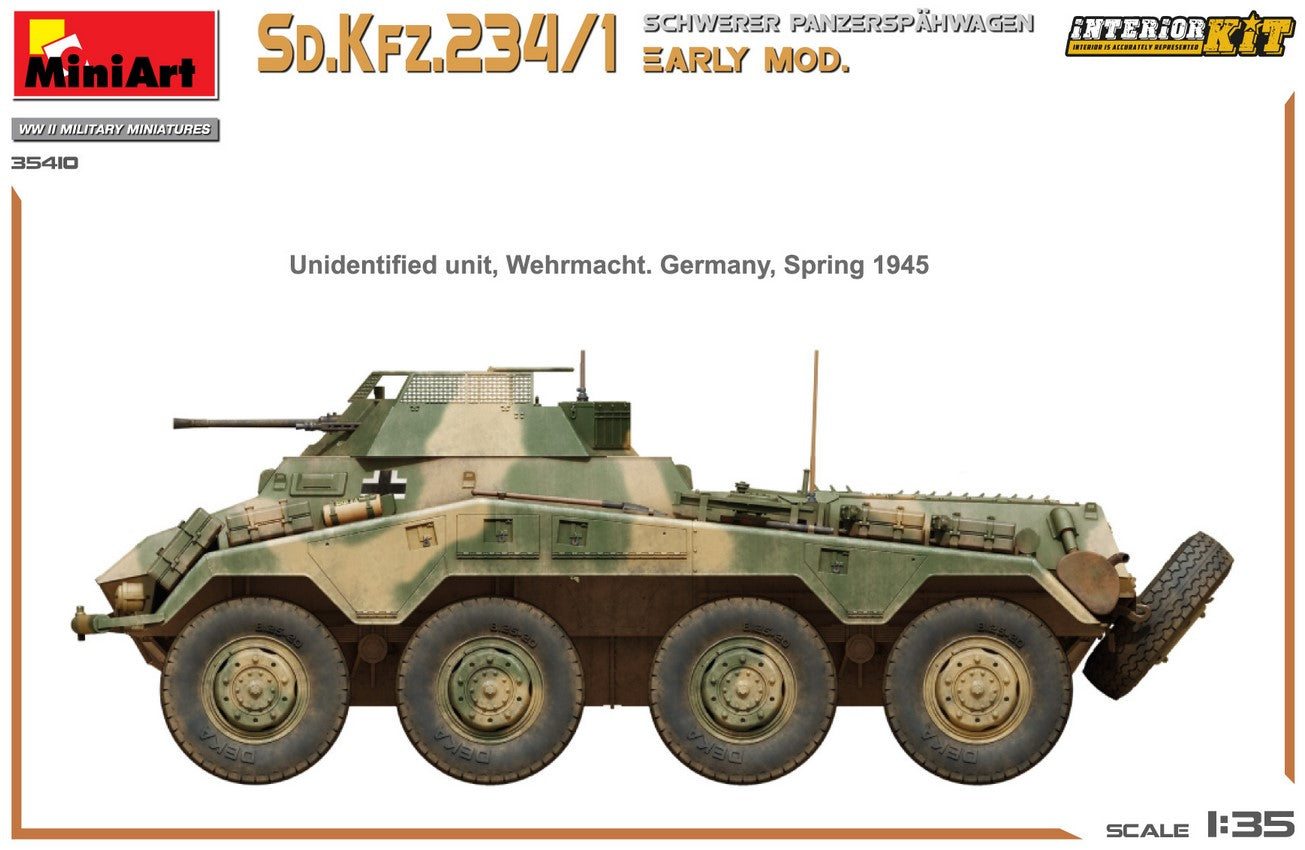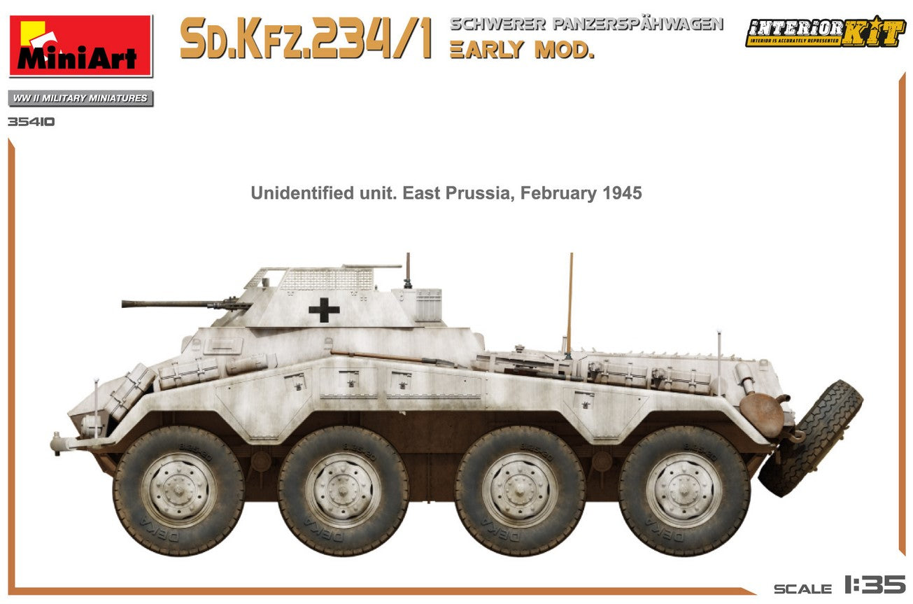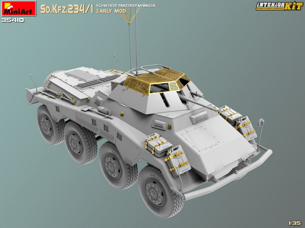 - Modelo de vehículo ligero Sd.Kfz. 234/1 con cañón KwK 30 L/55 de 20 mm, similar a la del SdKfz 222 y una ametralladora coaxial MG-34, en escala 1/35.