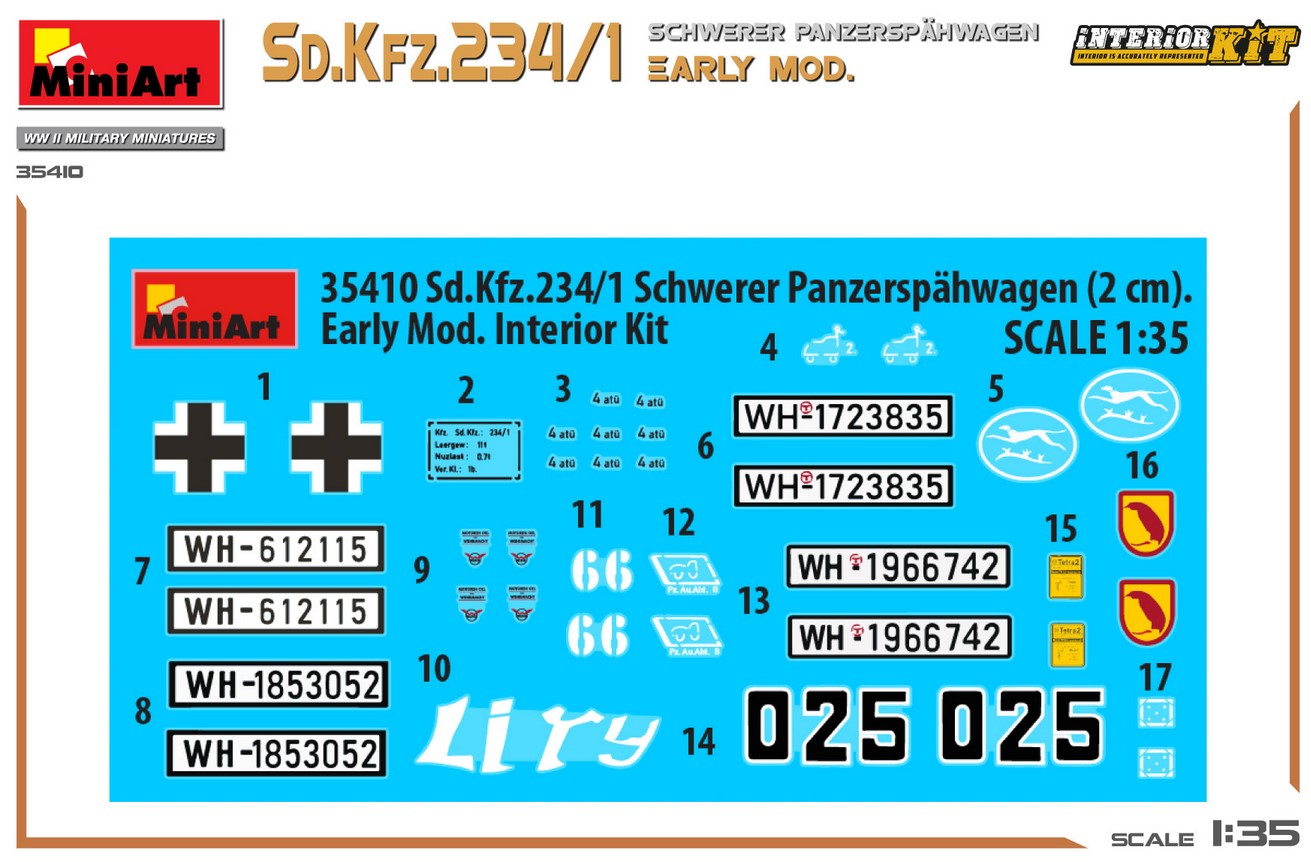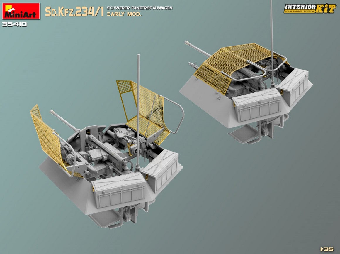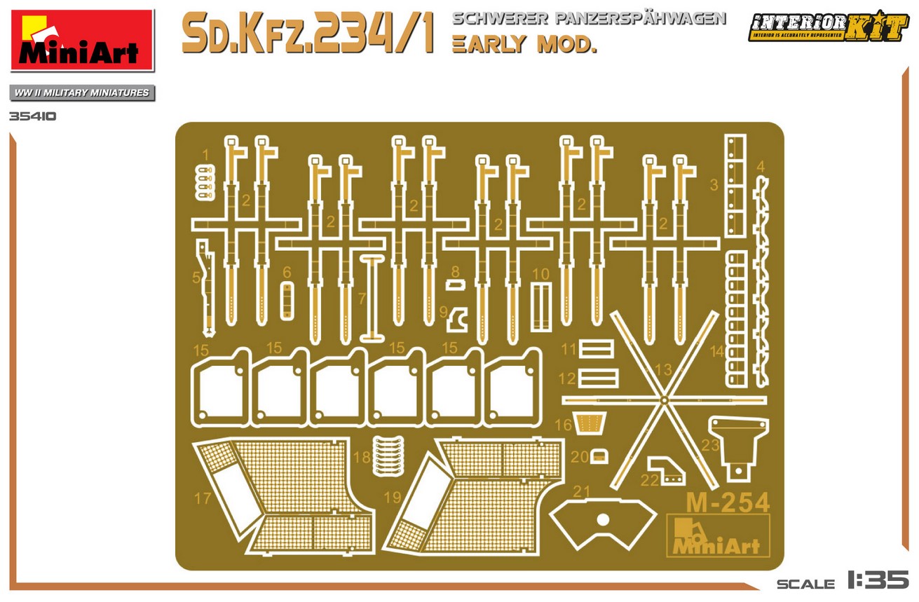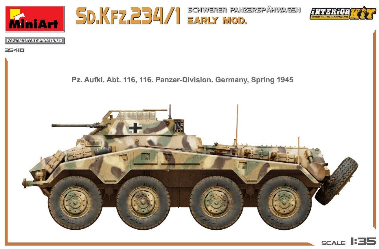 - Modelo de vehículo ligero Sd.Kfz. 234/1 con cañón KwK 30 L/55 de 20 mm, similar a la del SdKfz 222 y una ametralladora coaxial MG-34, en escala 1/35.