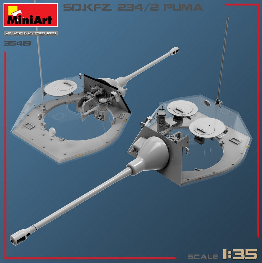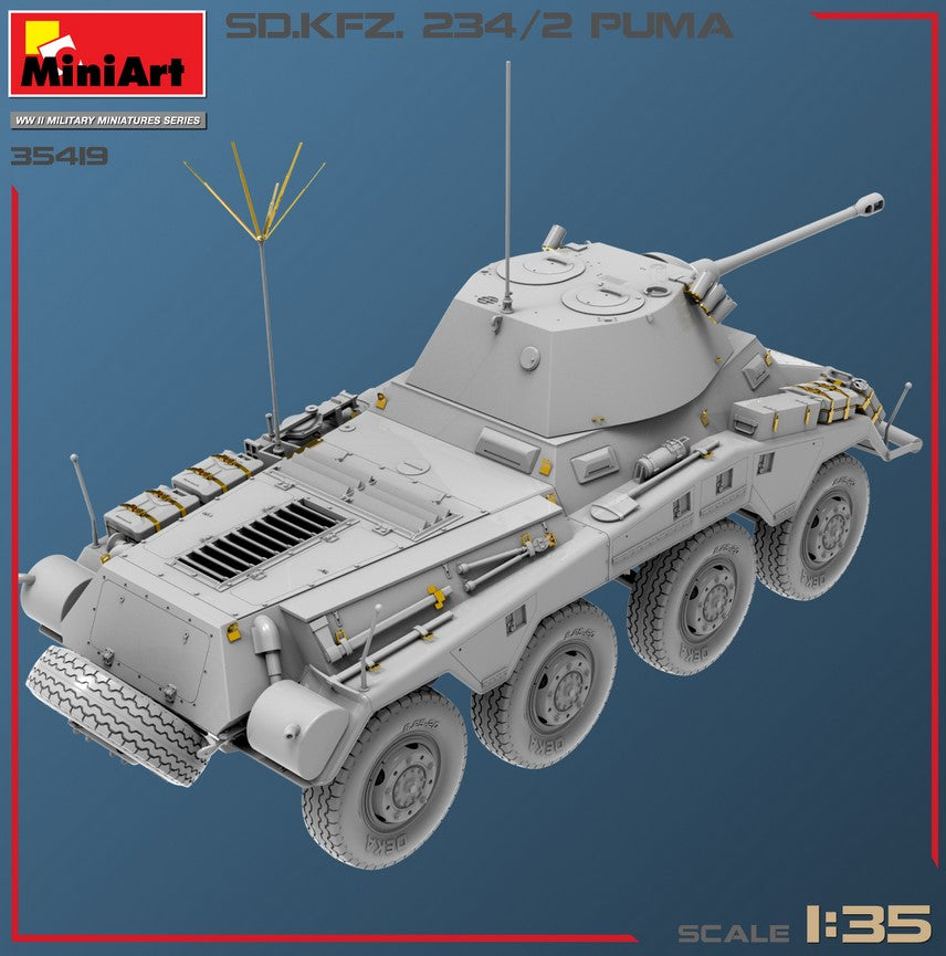 - Modelo de vehículo ligero de exploración Sd.Kfz. 234/2 Puma, en escala 1/35.