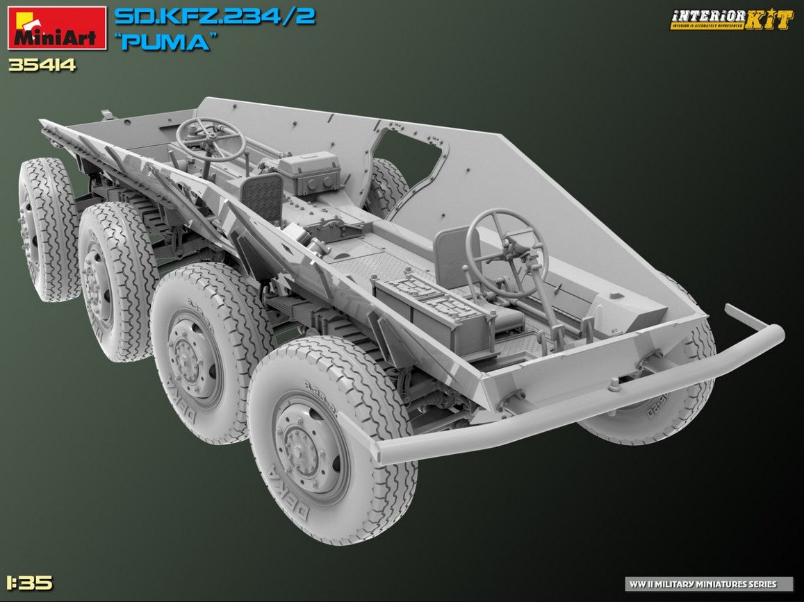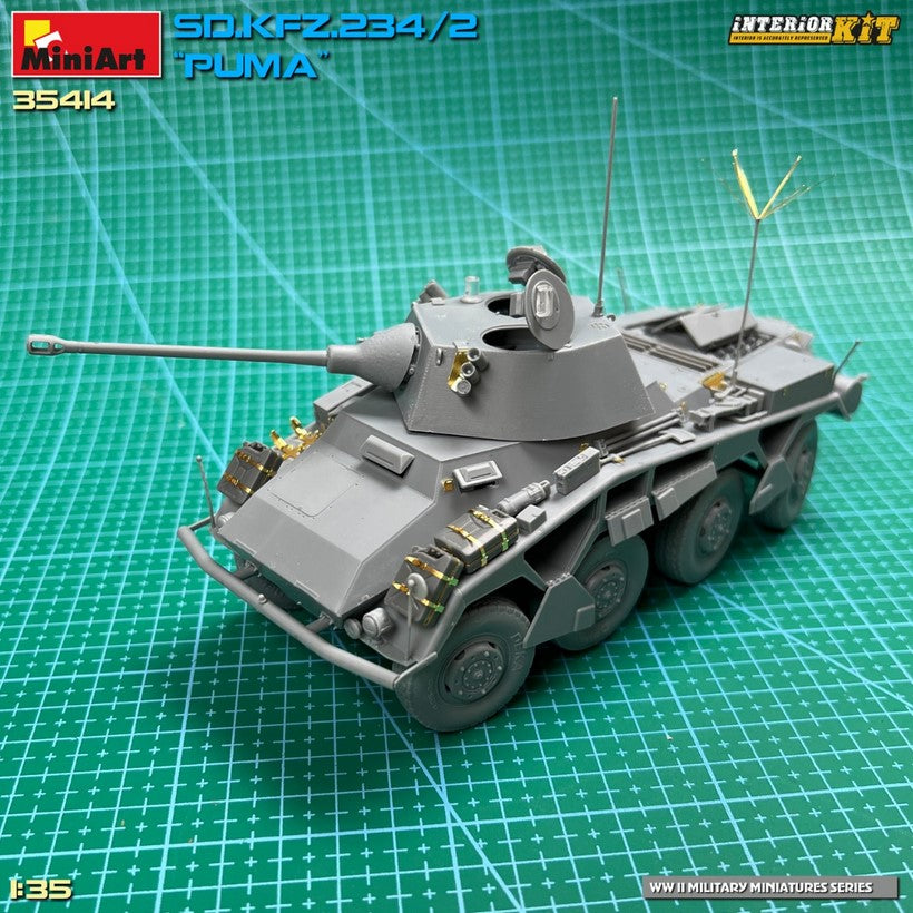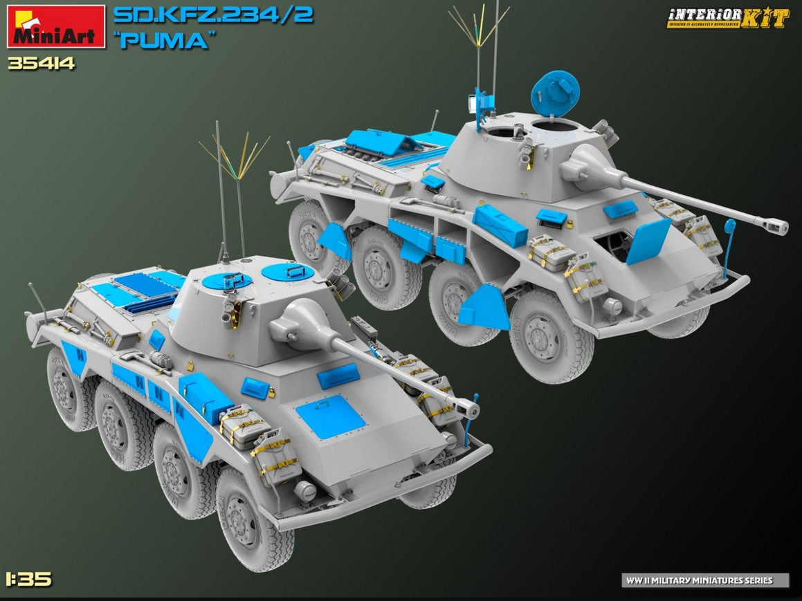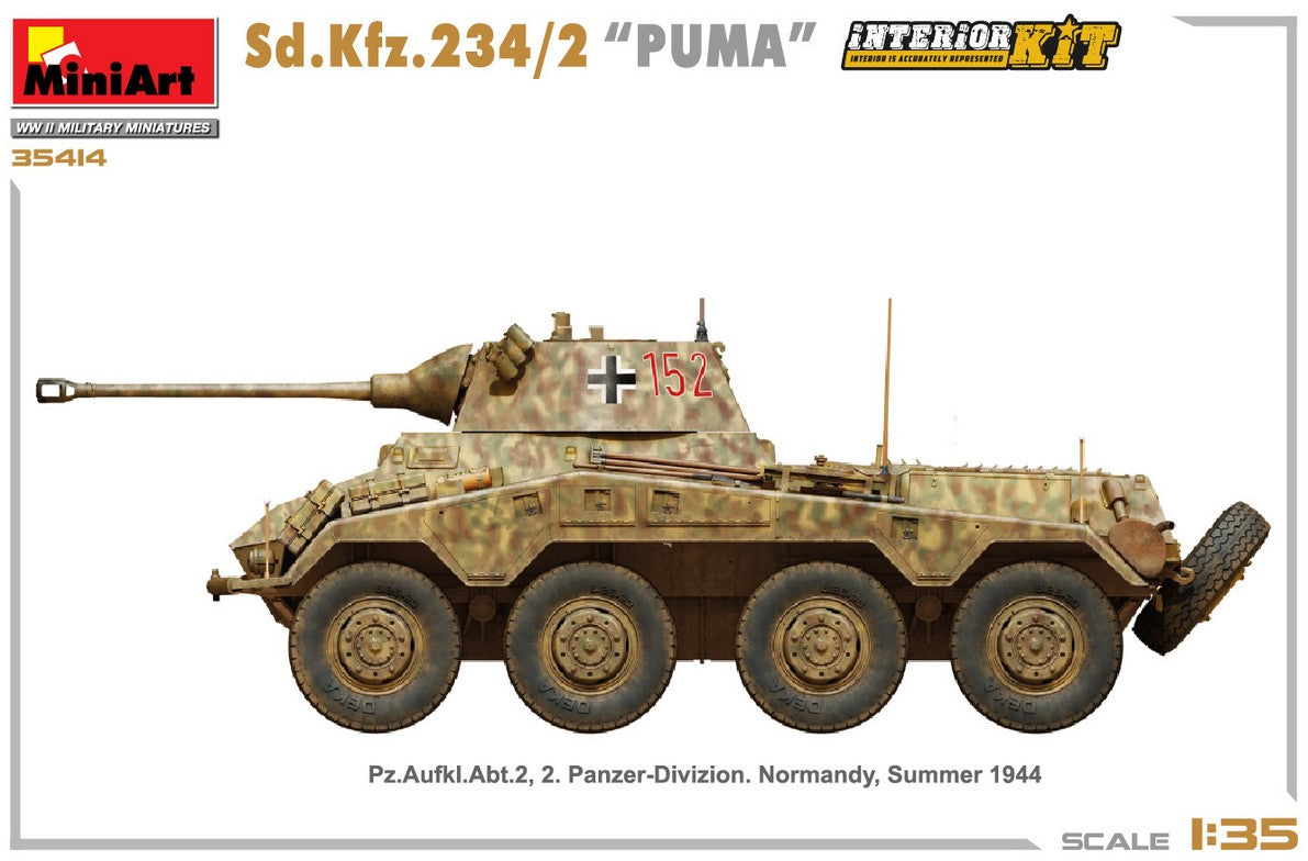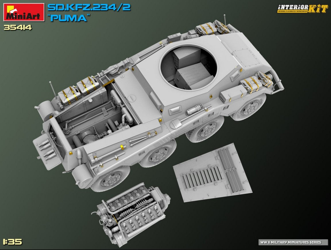 • Modelo de vehículo ligero de exploración Sd.Kfz. 234/2 Puma con el interior completamente detallado, en escala 1/35.