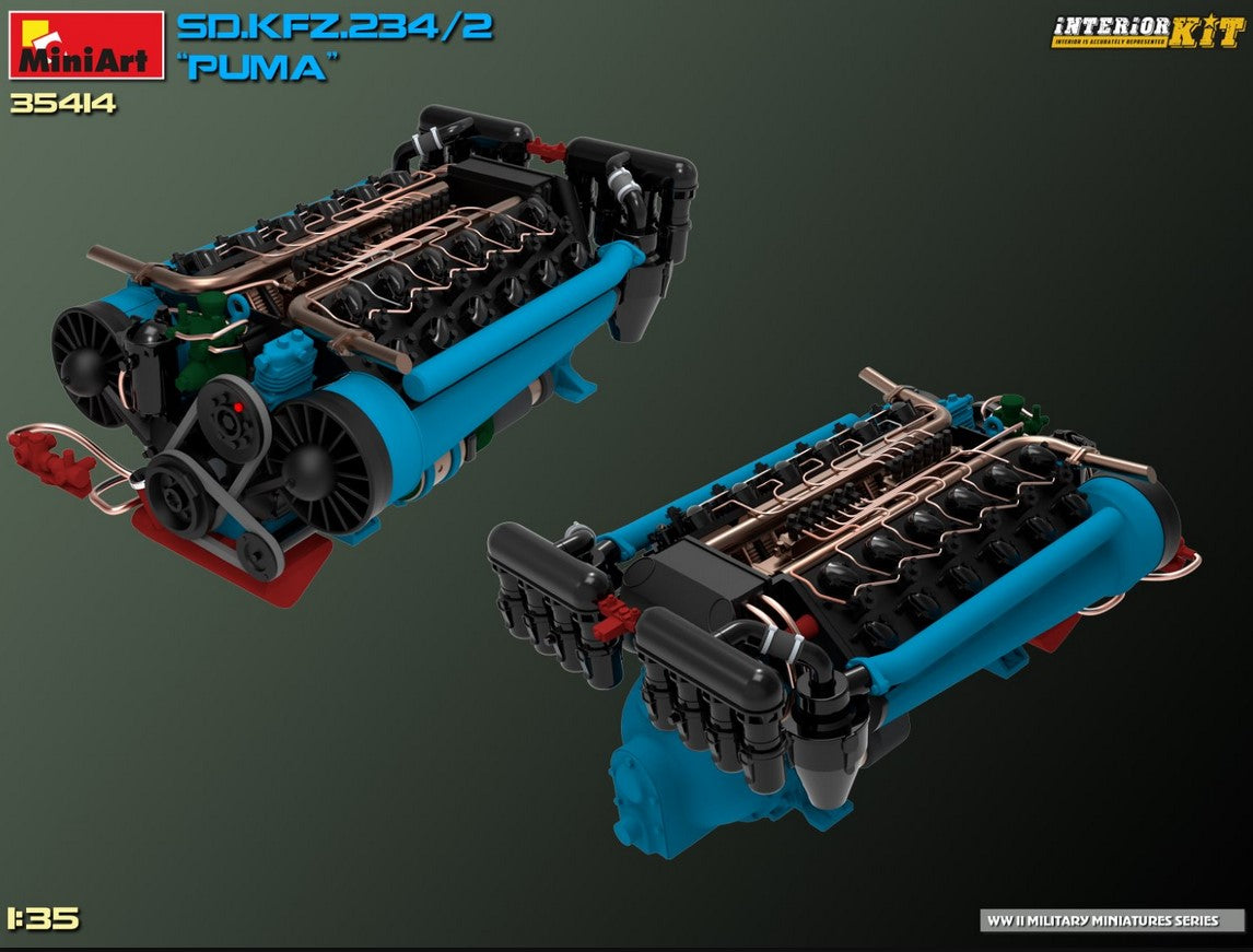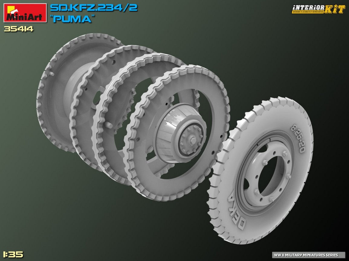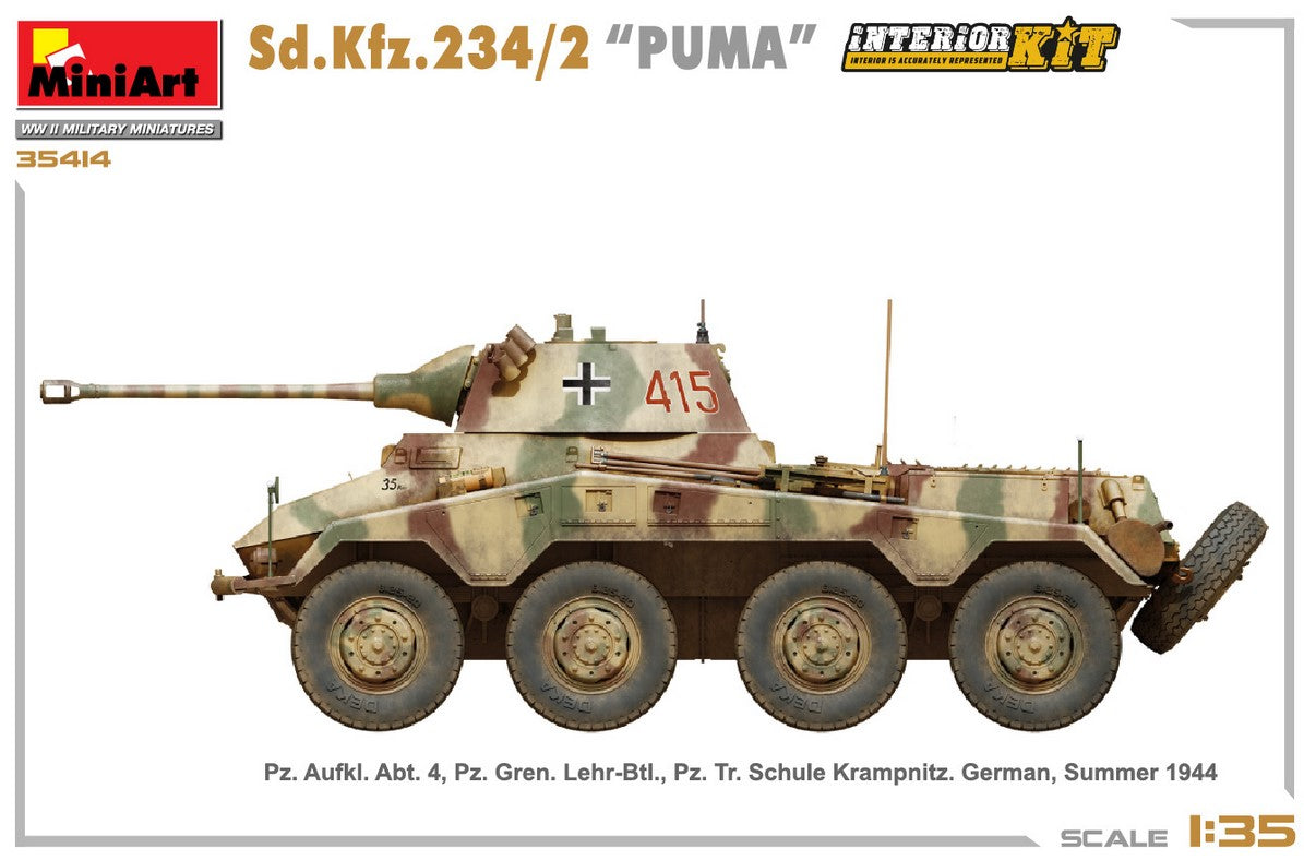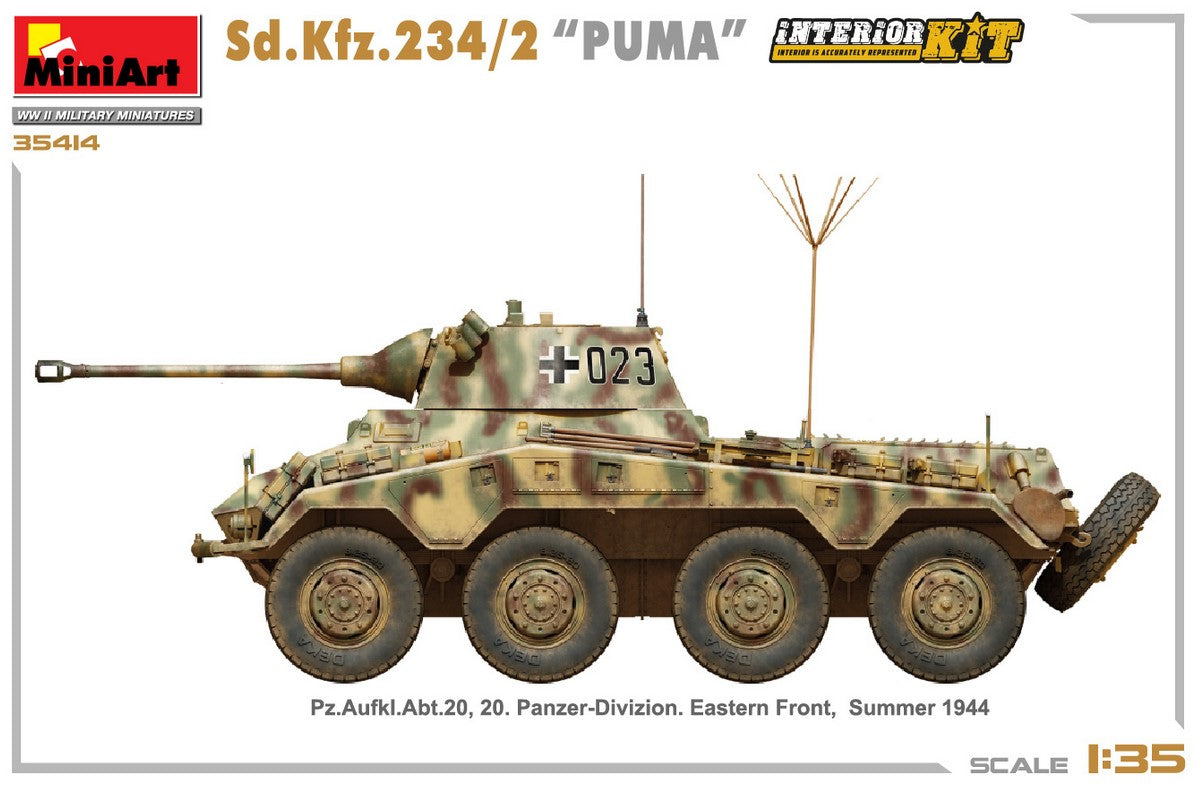 • Modelo de vehículo ligero de exploración Sd.Kfz. 234/2 Puma con el interior completamente detallado, en escala 1/35.