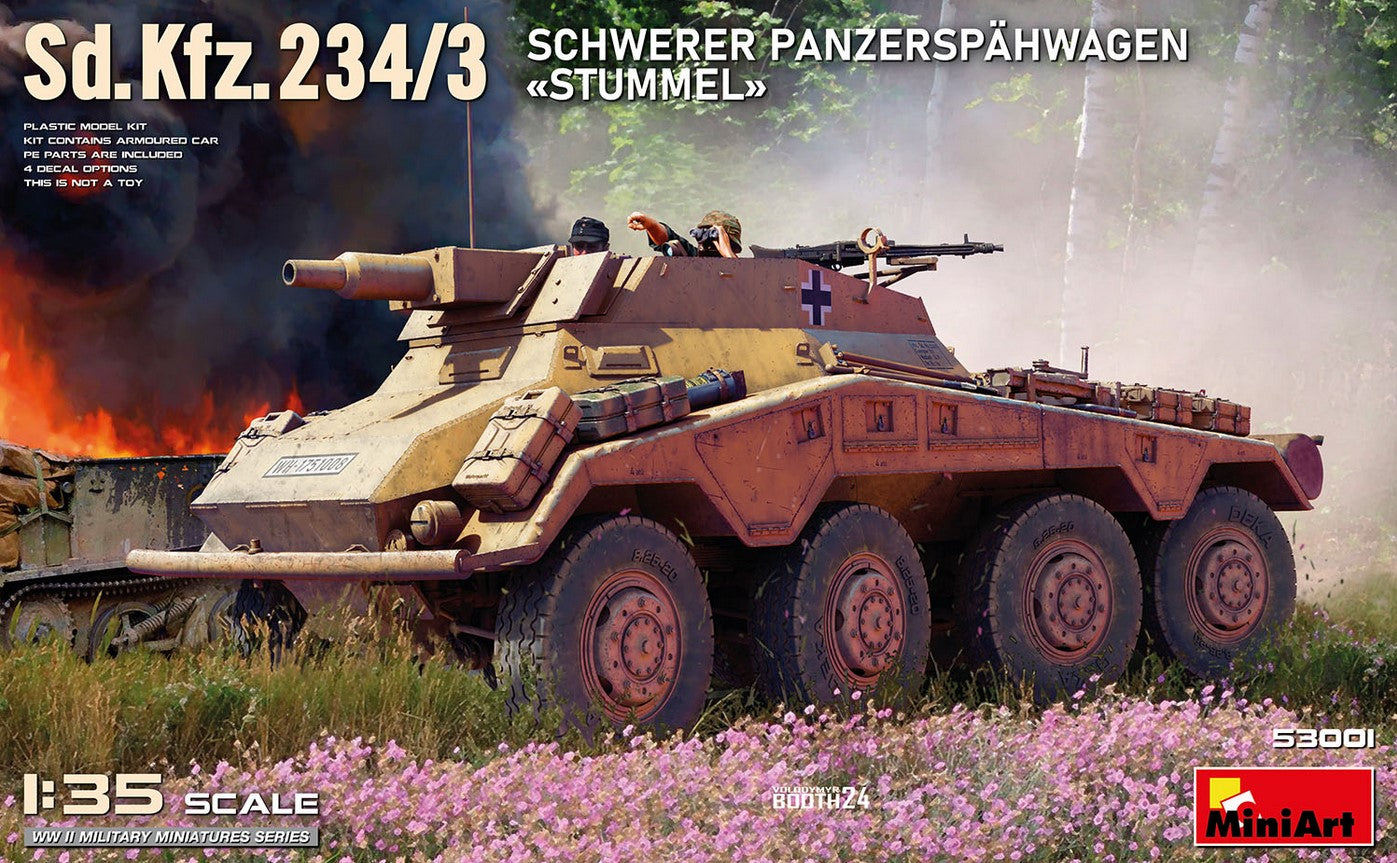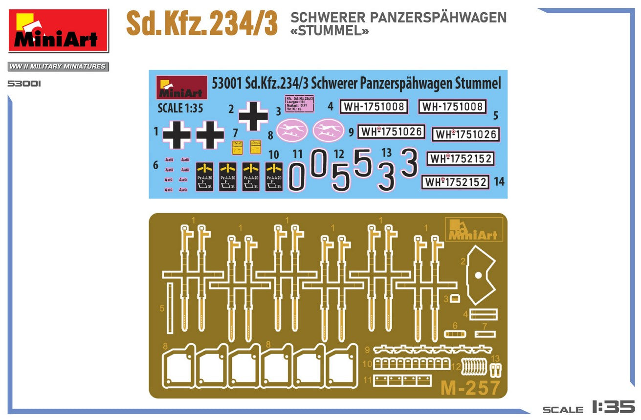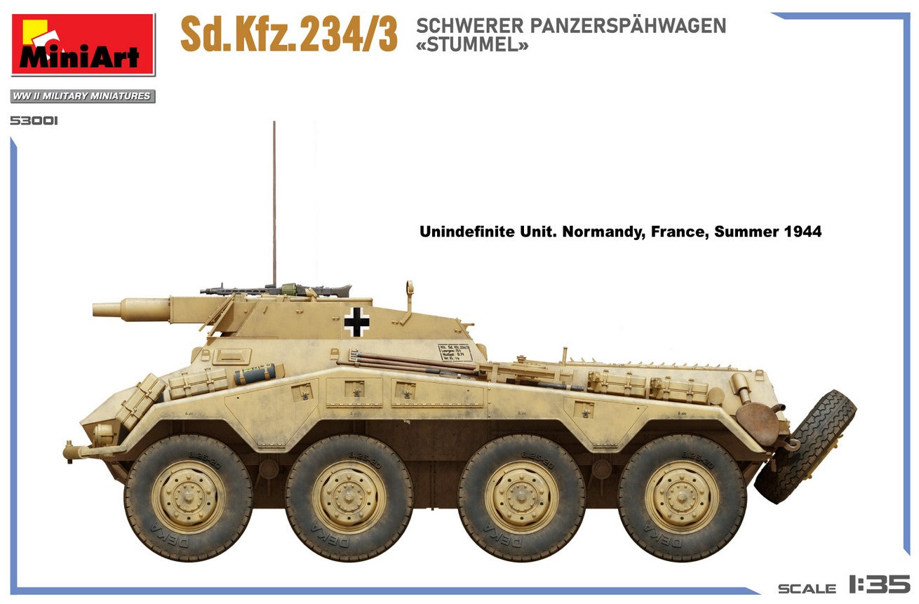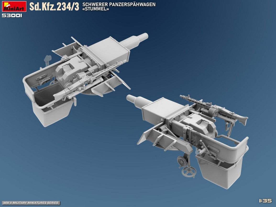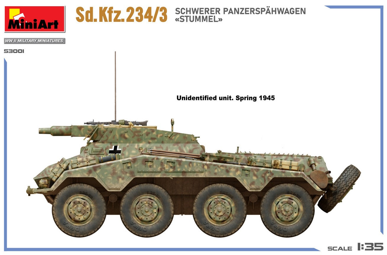 - Modelo de vehículo ligero Sd.Kfz. 234/3 Stummelcon cañón anti-carro corto de 75mm y con el interior completamente detallado, en escala 1/35.