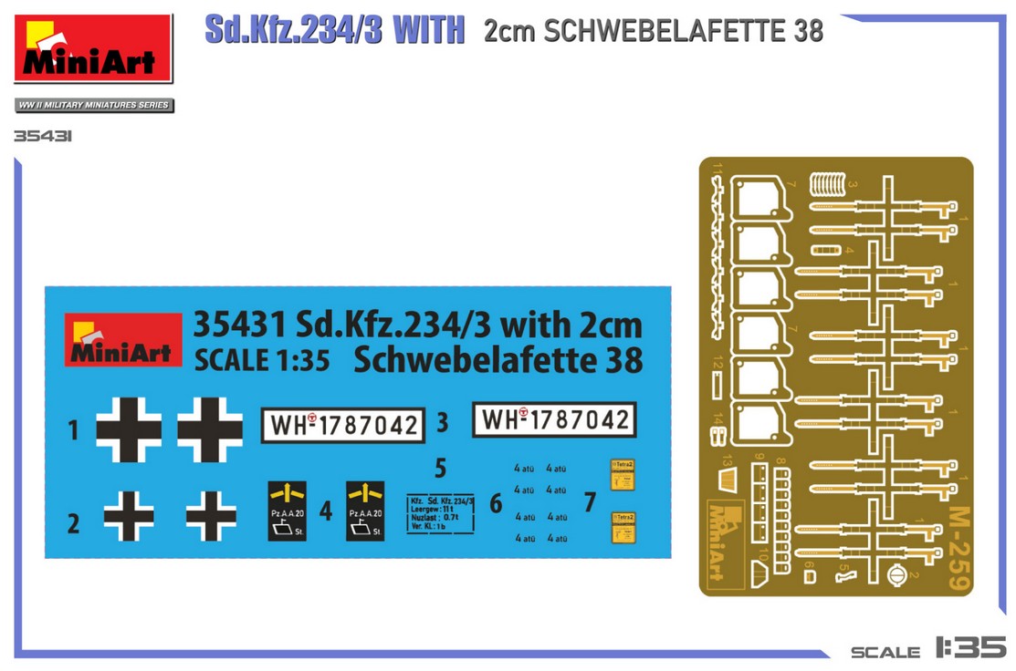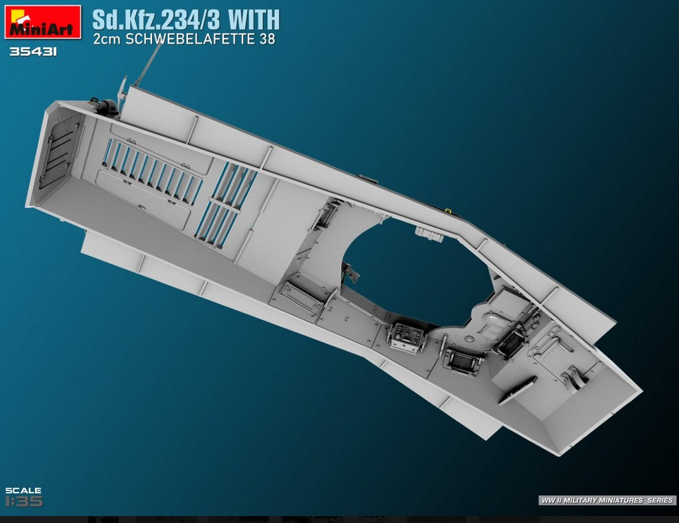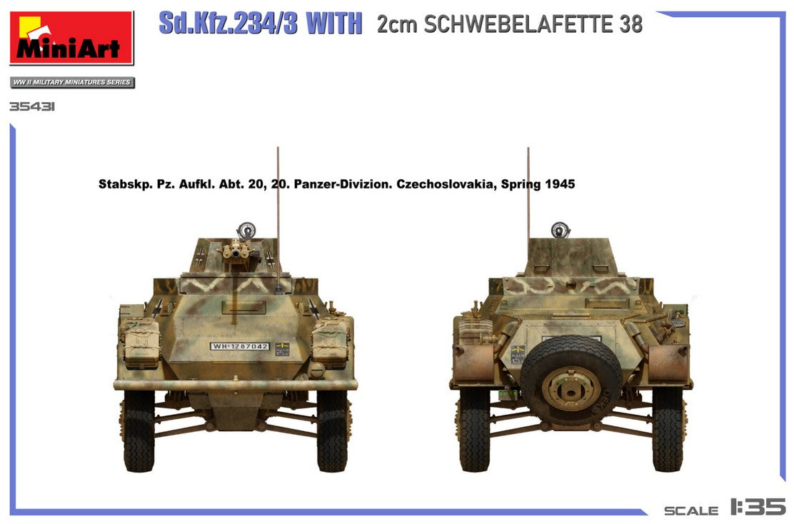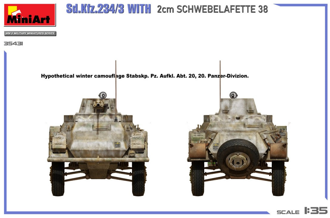 - Modelo de vehículo ligero Sd.Kfz. 234/3 con cañón antiaéreo Flak38 de 20 mm, en escala 1/35.
