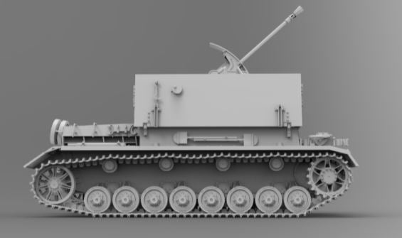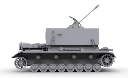 • Model of a German tank adapted to anti-aircraft defense, at 1/35 scale.