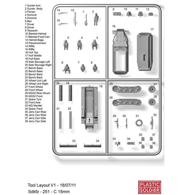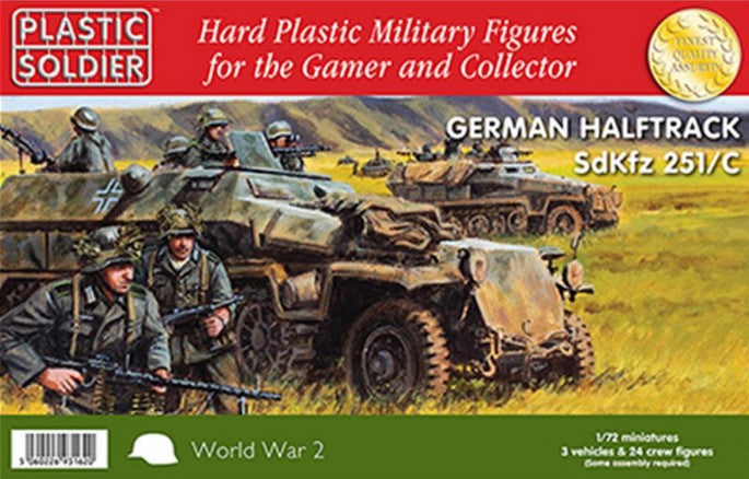 - Set de wargame con vehículo alemán semioruga Sd.KFz.251 en su versión C y soldados de infantería. en escala 1/72.