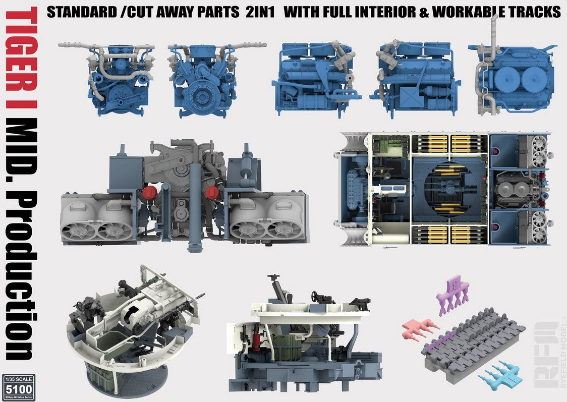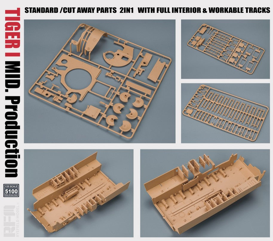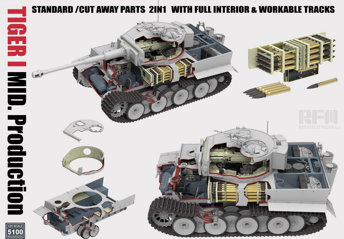 - Maqueta del famoso carro pesado alemán Tiger I de producción intermedia, a escala 1/35.