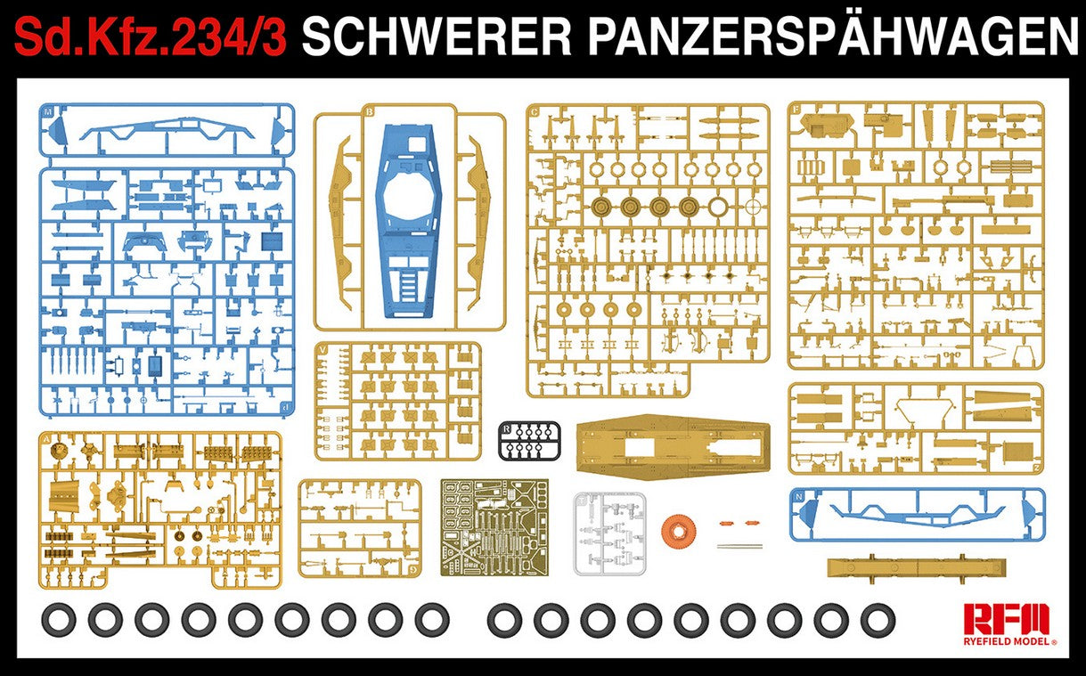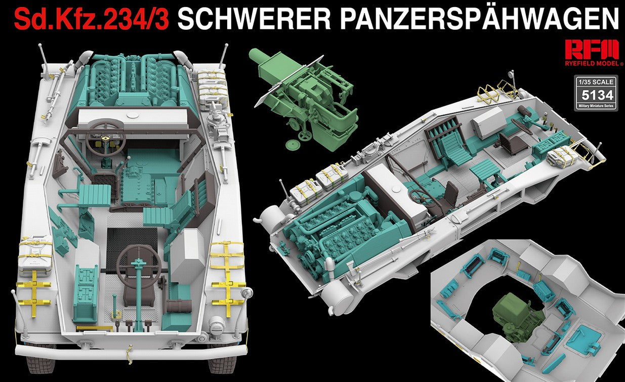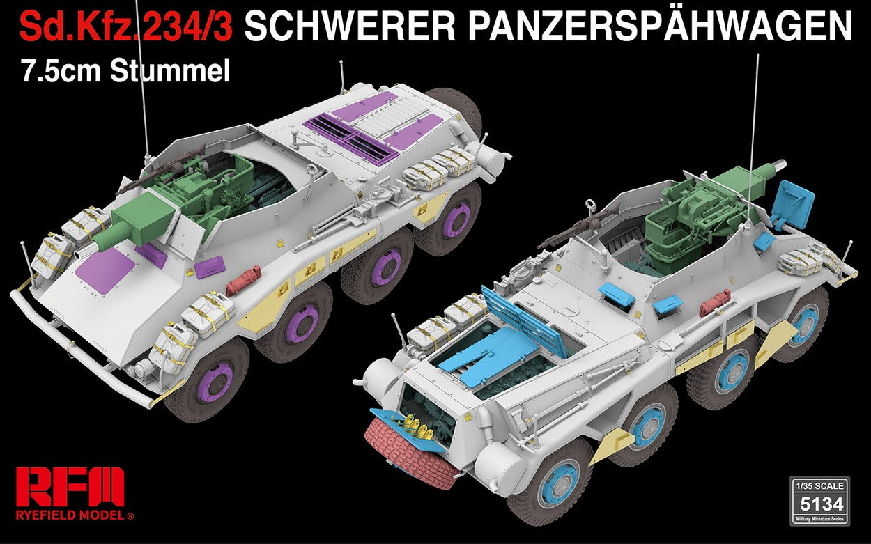 - Maqueta del vehículo ligero de apoyo a infantería alemán Sd.Kfz.234/3 con cañón corto de 75mm, en escala 1/35.