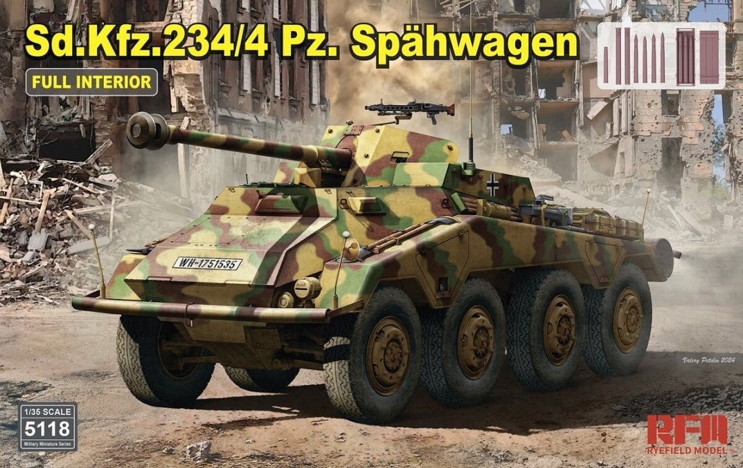 - Maqueta del vehículo ligero caza carros alemán Sd.Kfz.234/4 con cañón largo de 75mm, en escala 1/35.