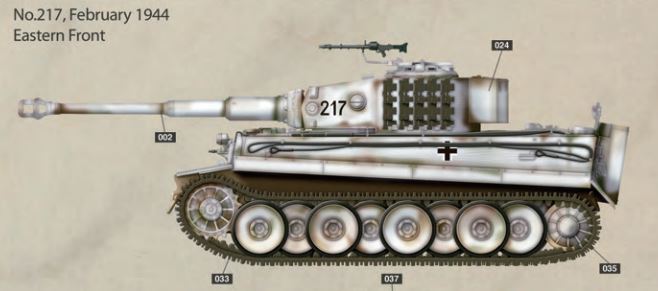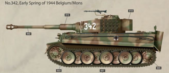 - Intermediate production German tank model at 1/35 scale.