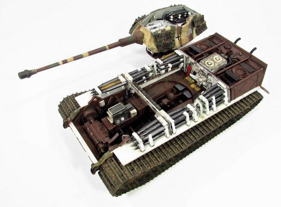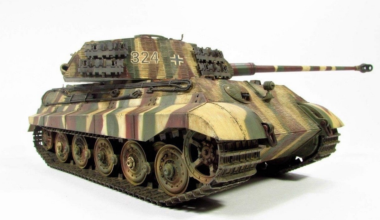 - Maqueta de carro pesado alemán King Tiger con torre de producción Porsche y zimmerit aplicado e interior completamente detallado. En escala 1/35.