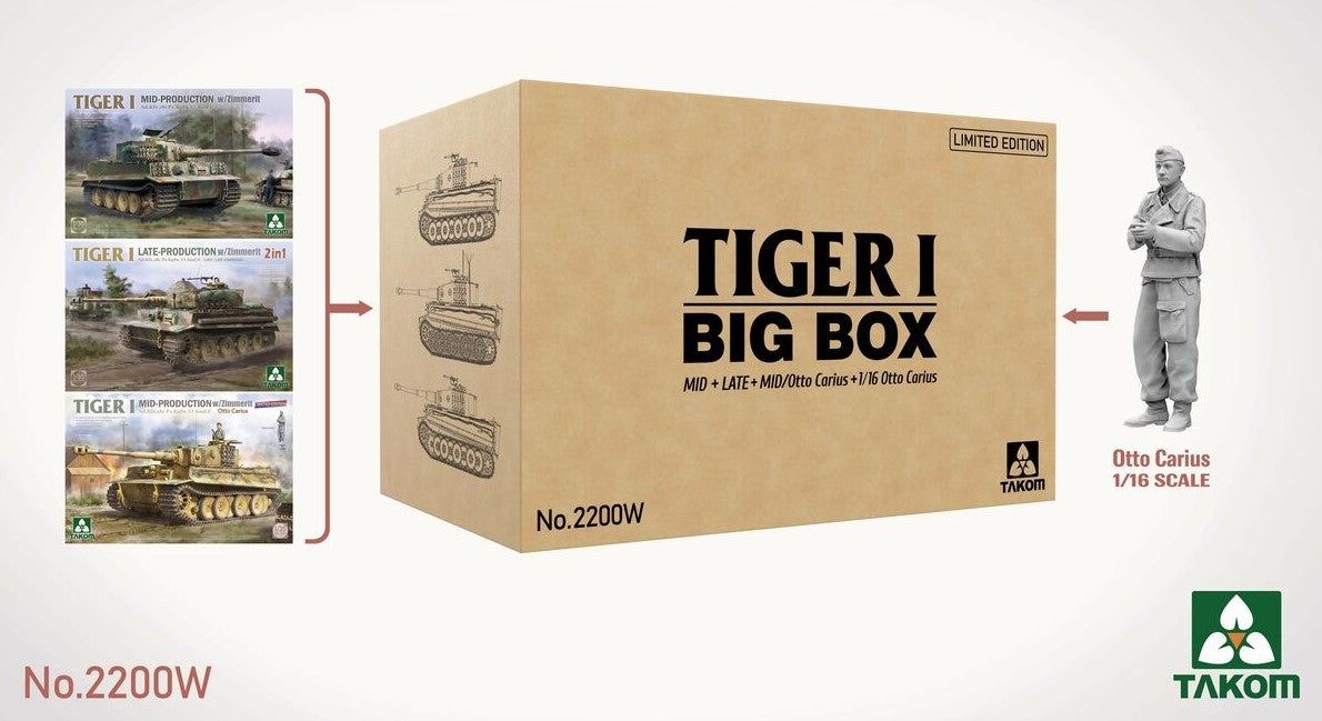 - Set edición limitada con los tres modelos de Tiger I en escala 1/35 y una figura de Otto Carius en 1/16.