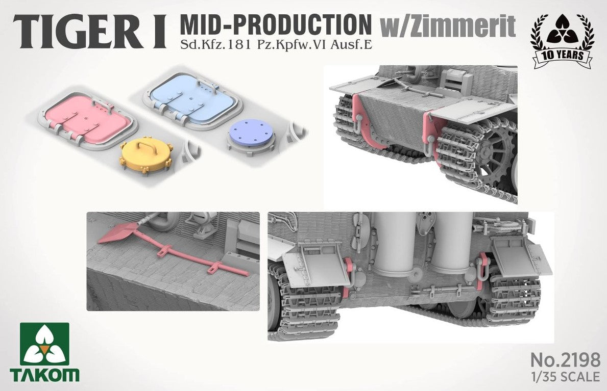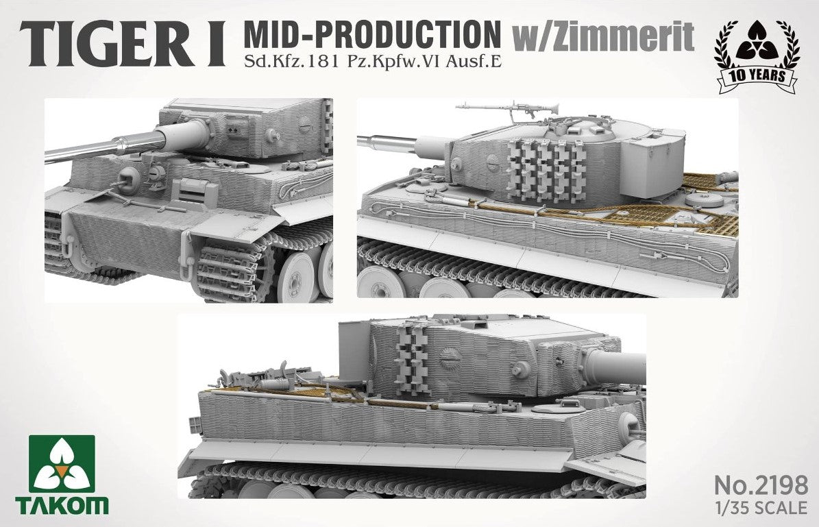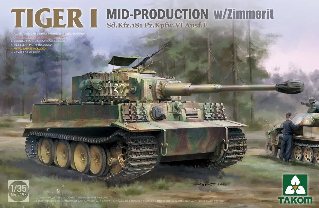- Maqueta de carro alemán Tiger I en su versión intermedia con zimmerit aplicado, a escala 1/35.