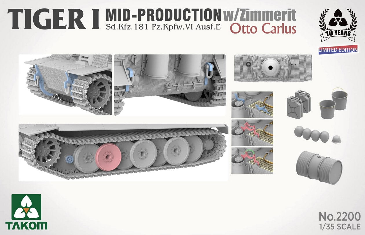 - Maqueta de carro alemán Tiger I en su versión intermedia con zimmerit aplicado, a escala 1/35.