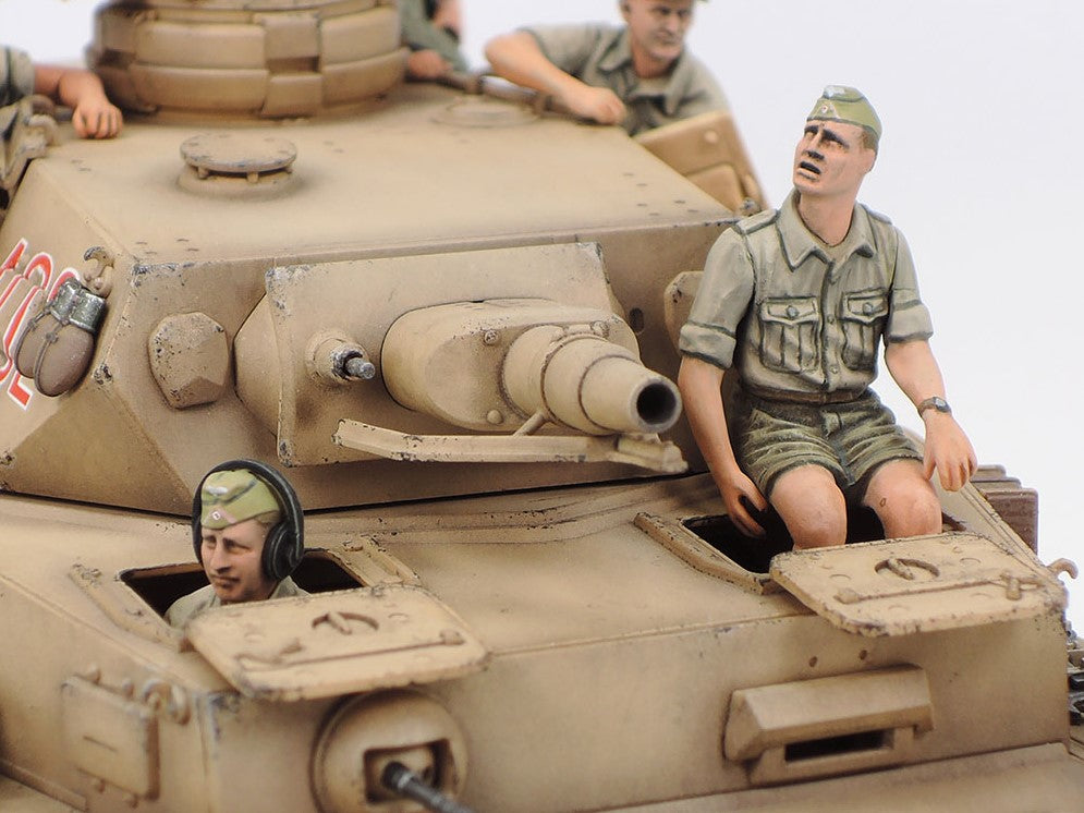 - Modelo de carro de combate alemán Panzer IV en su versión F junto con motocicleta ambientados en el Norte de Africa, en escala 1/35.