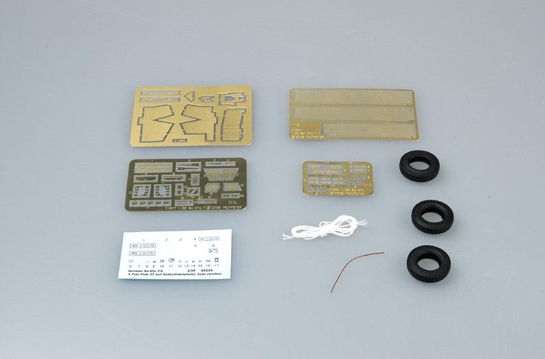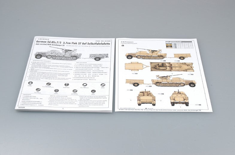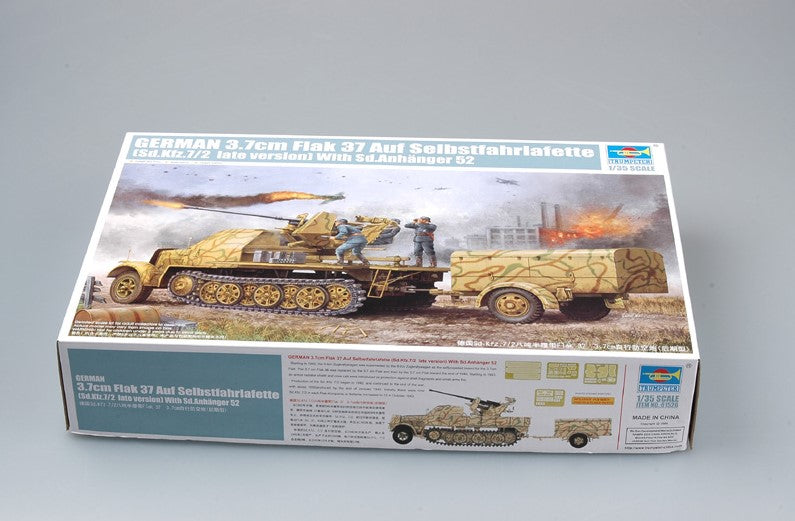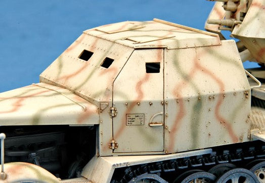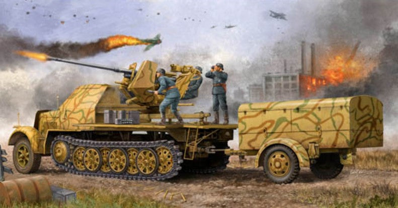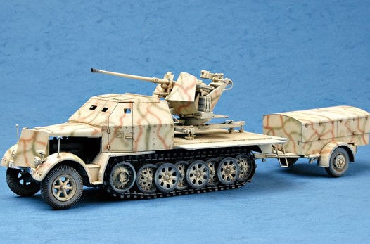 - Vehículo blindado alemán Sd.Kfz.7/2, en su versión final, con cañón antiaéreo Flak 37 de 37mm y remolque, en escala 1/35.