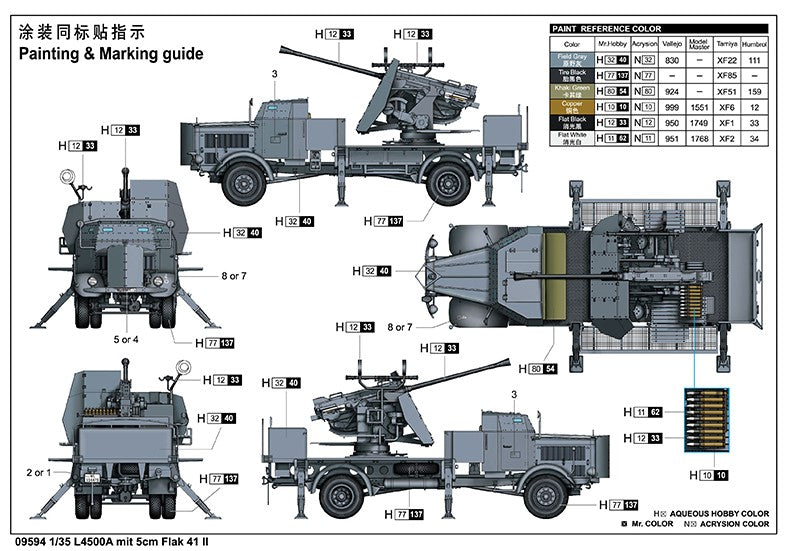 - Vehículo alemán blindado de defensa aérea basado en chasis de camión L4500 A con Flak 41 de 5cm, en escala 1/35.