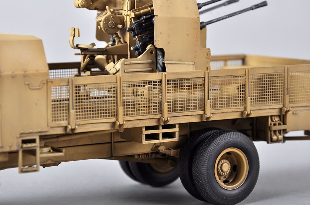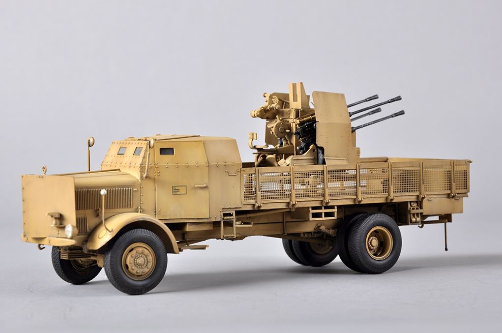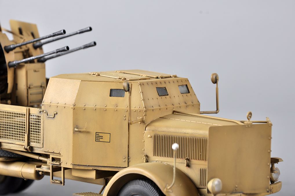 • Vehículo alemán blindado de defensa aérea basado en chasis de camión L4500 A con Flak 38 de 2cm, en escala 1/35.