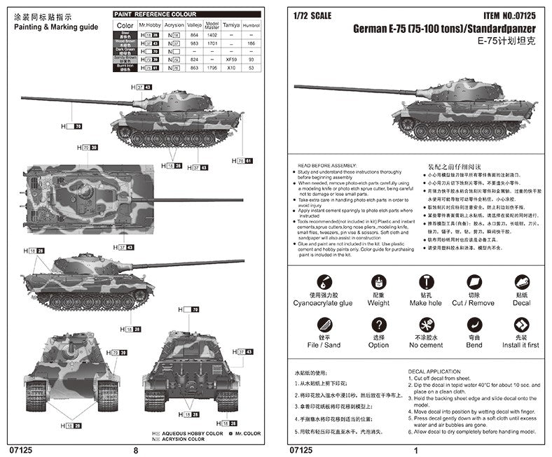 - Proyecto de vehículo alemán E-75, basado en el chásis de un carro King Tiger, que no llegó a pasar a producción, en escala 1/72.