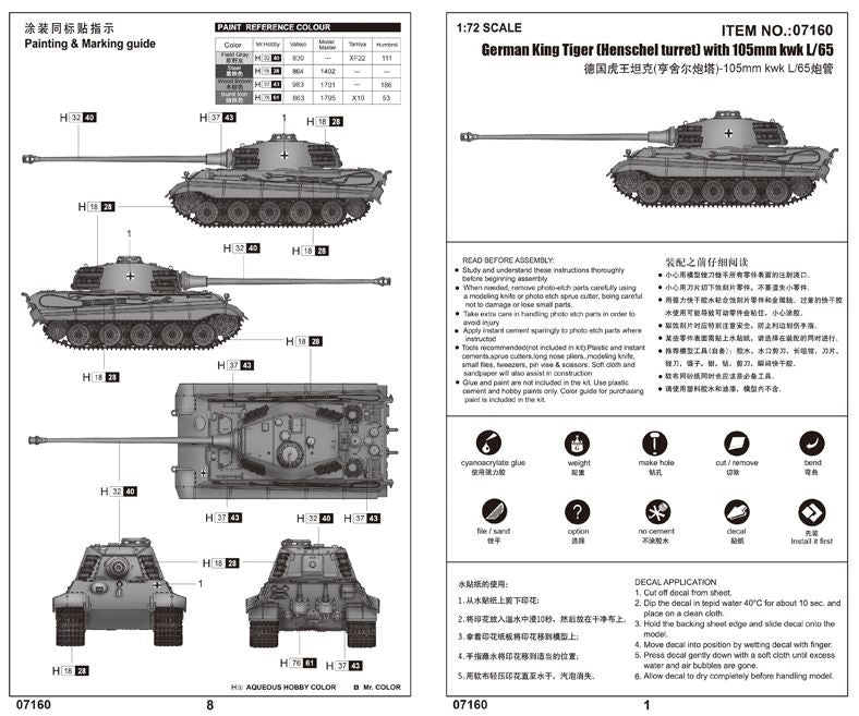 TRUMPETER (1/72) German King Tiger (Henschel turret) with 105mm kwk L/65