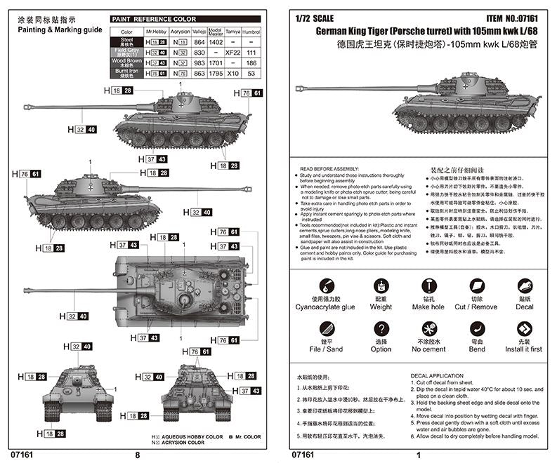 TRUMPETER (1/72) German King Tiger (Porsche turret) with 105mm kwk L/68