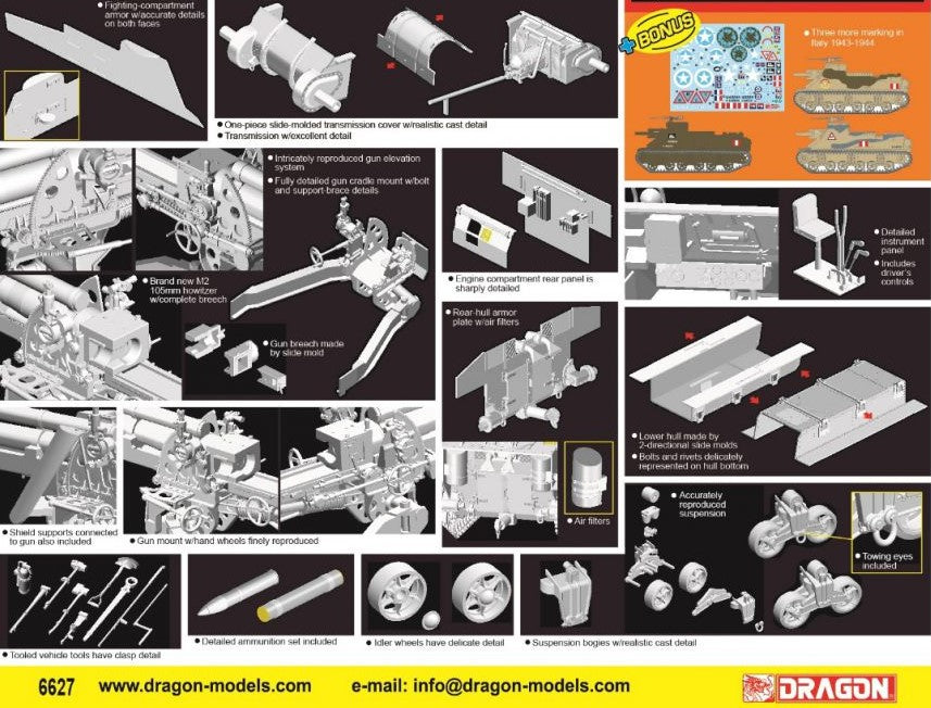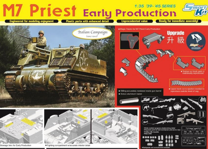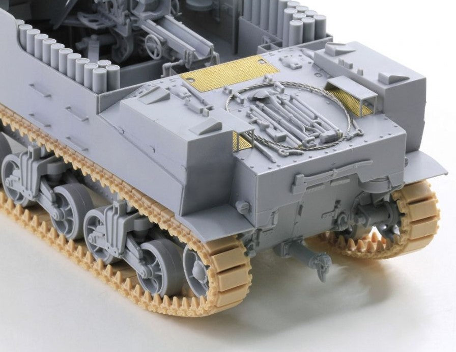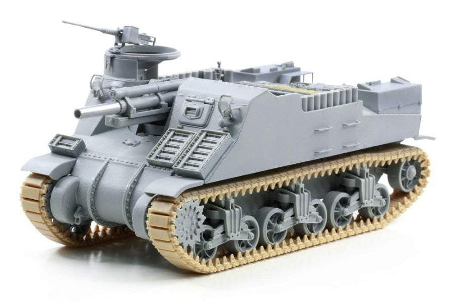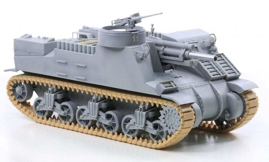 - Modelo de artillería autopropulsada estadounidense M7 Prieste de versión inicial, en escala 1/35.
