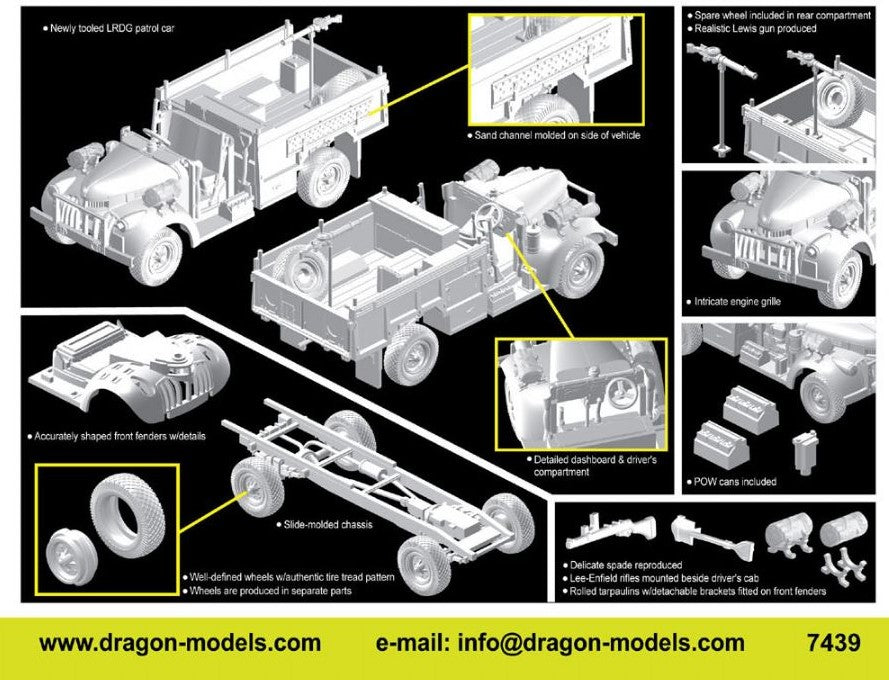 - Modelo del vehículo ligero de exploración británico Patrol Car con ametralladora Lewis, que soliían usar en el LRDG durante la campaña del Norte de Africa, en escala 1/72.