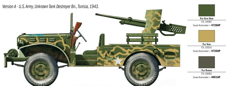 - Modelo de vehículo ligero con cañón anticarro norteamericano Dodge WC55, en escala 1/35.