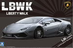 - Maqueta sin montar ni pintar del deportivo Lamborghini Huracan en su versión 2 LB-Works, en escala 1/24.