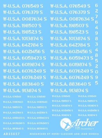 - Hoja de calcas tradicionales al agua para códigos de vehículos ligeros norteamericanos, en escala 1/35.