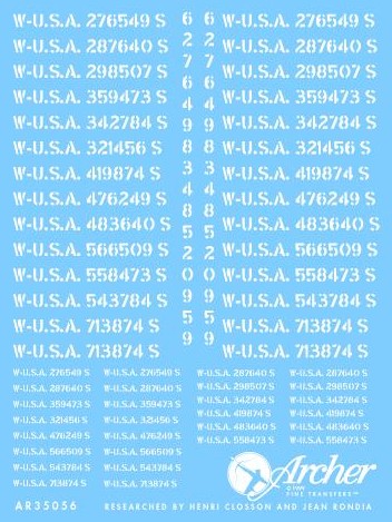- Hoja de calcas tradicionales al agua para códigos de vehículos norteamericanos, en escala 1/35.