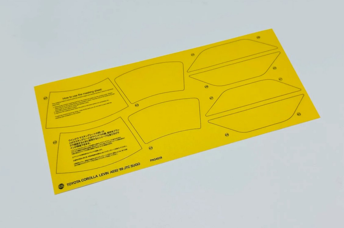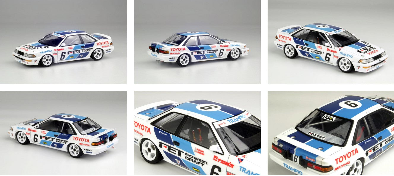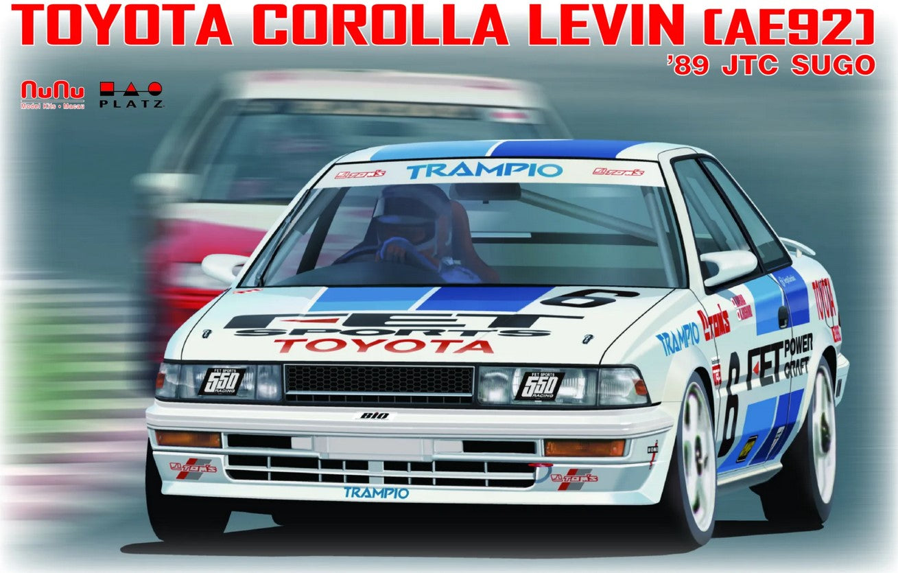 - Maqueta sin montar ni pintar del coche de competición Toyota Corolla Levin (AE92) que compitió en la JTC Sugo de 1989, en escala 1/24.