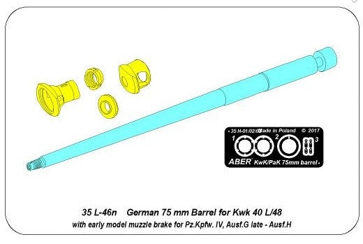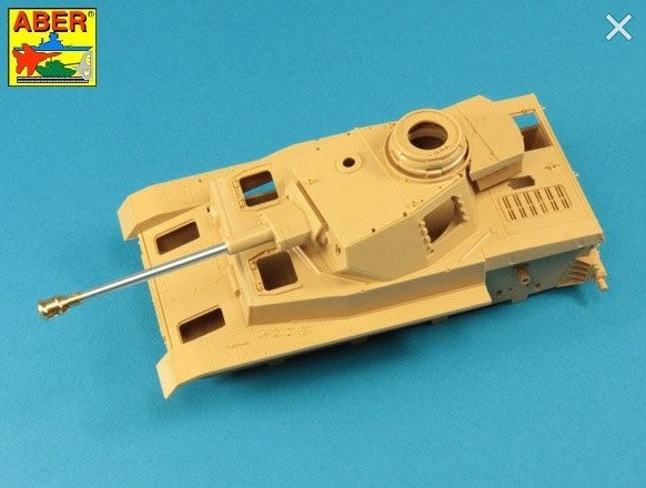 - Cañón alemán de metal Kwk 40L/48 de 75mm para carro de combate alemán Pz.IV en sus versiones G tardía y H, a escala 1/35.