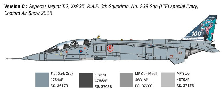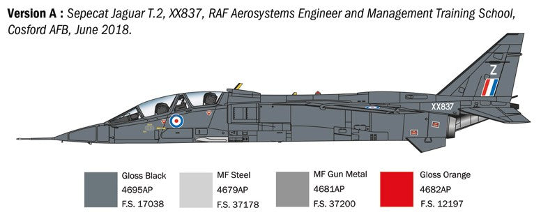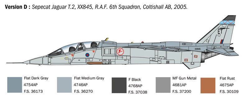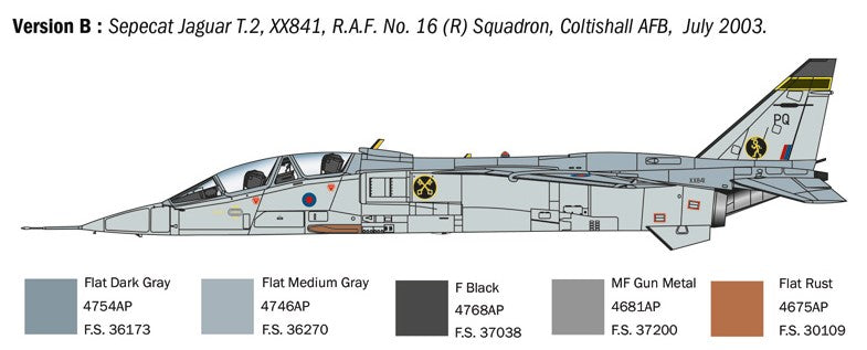 - Modelo de caza británico Sepecat Jaguar T.2 en sus versión de entrenamiento de la RAF, en escala 1/72.
